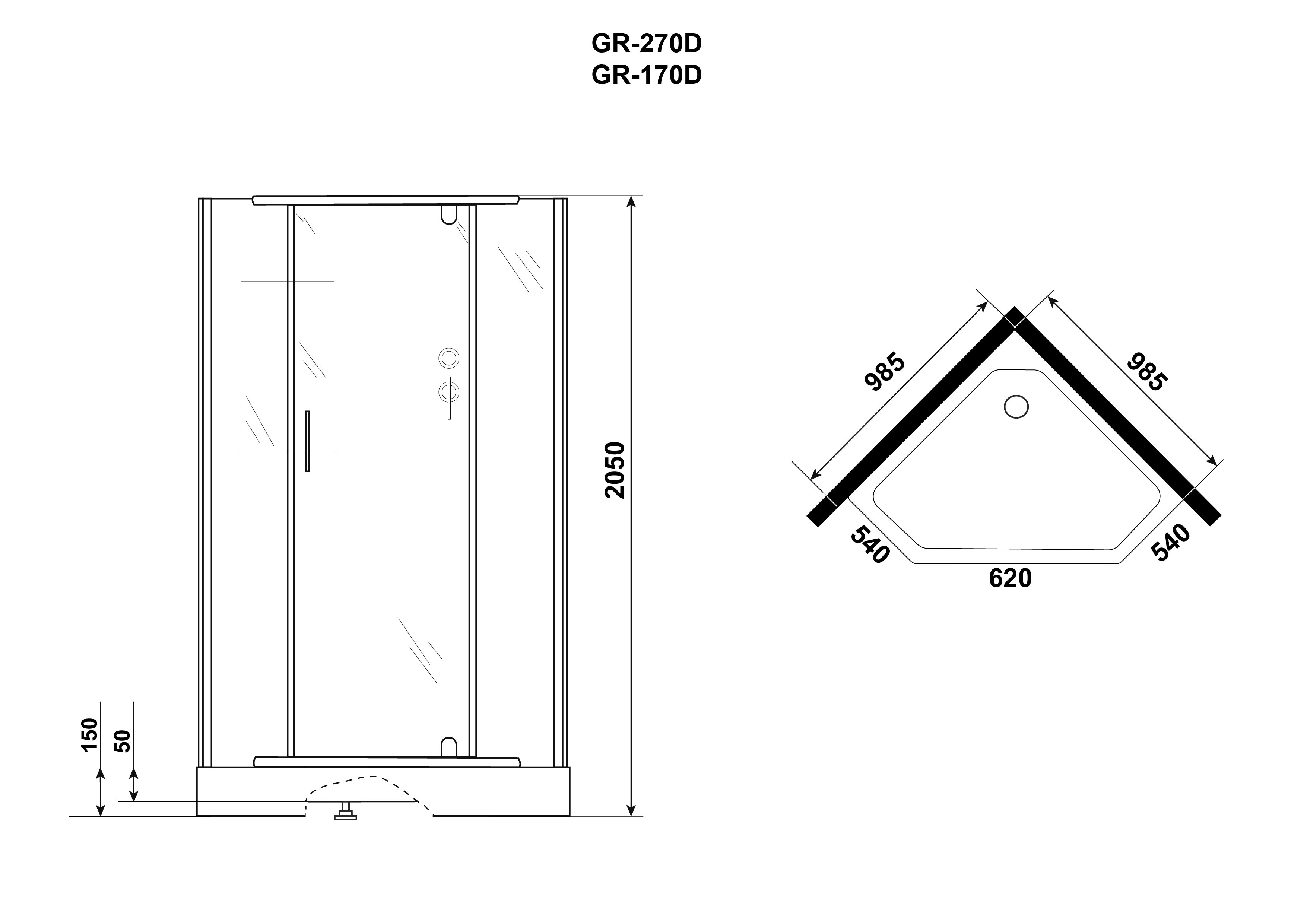 Душ.каб. GR270D (100*100*205) GROSSMAN Classic 4 места