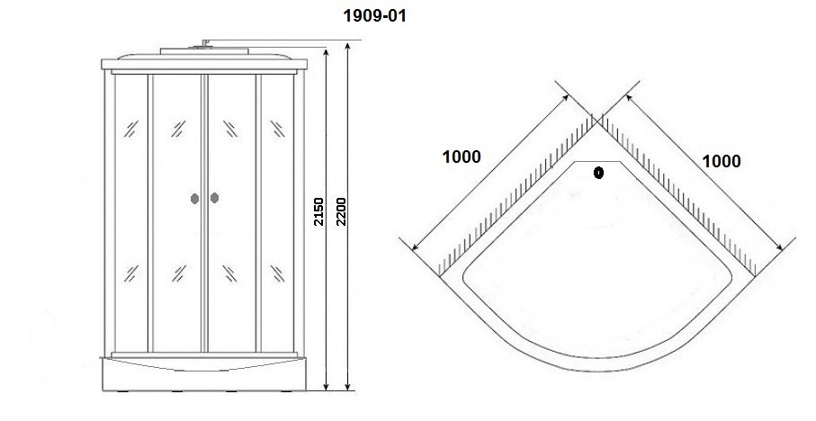 Душ.каб. NG-1909-01 (1000х1000х2200) высокий поддон(48см) стекло ТОНИРОВАННОЕ 4 места