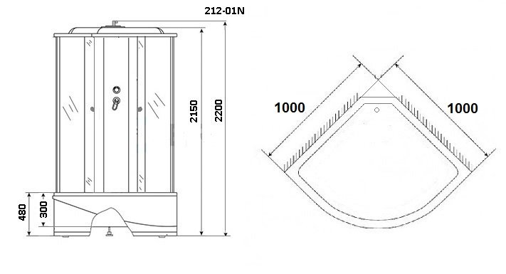 Душ.каб. NG-212-01N (1000х1000х2200) высокий поддон(48см) стекло ТОНИРОВАННОЕ 4 места