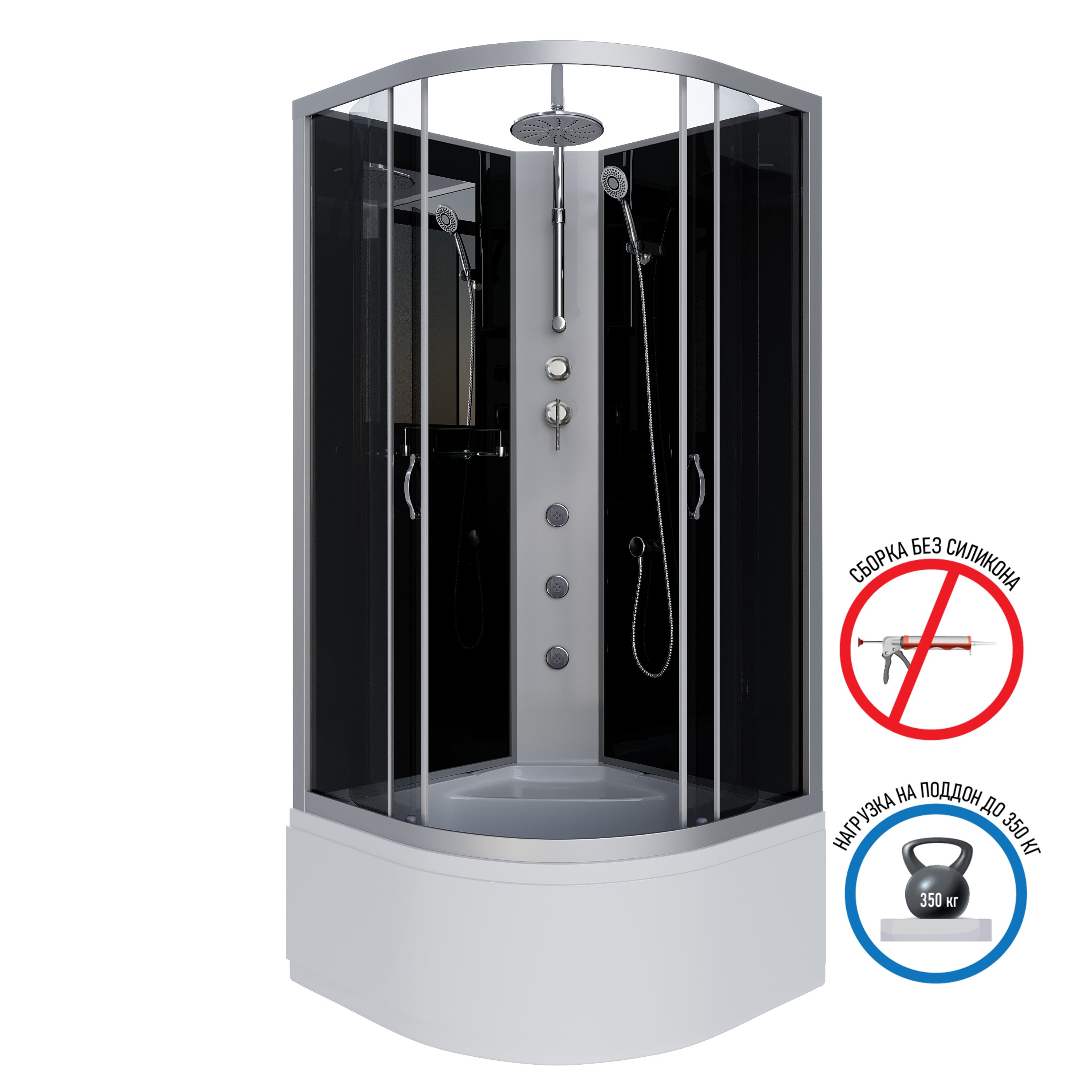 Душ.каб. NG-2507-14BKTG (800х800х2100-2400) высокий поддон(40см) стекло ТОНИРОВАННОЕ 4 места