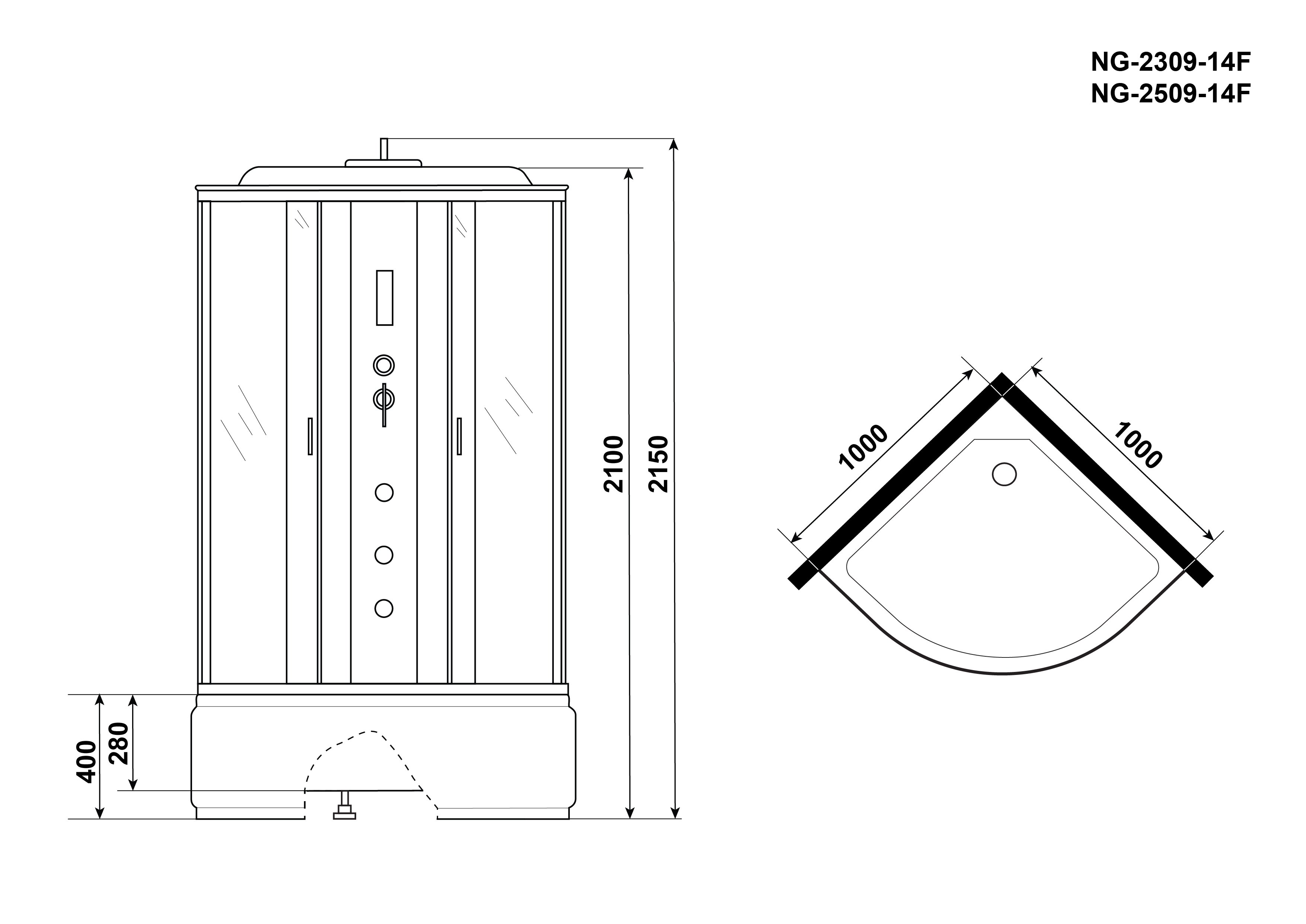 Душ.каб. NG-2509-14F (1000х1000х2150) высокий поддон(40см) стекло ТОНИРОВАННОЕ 4 места