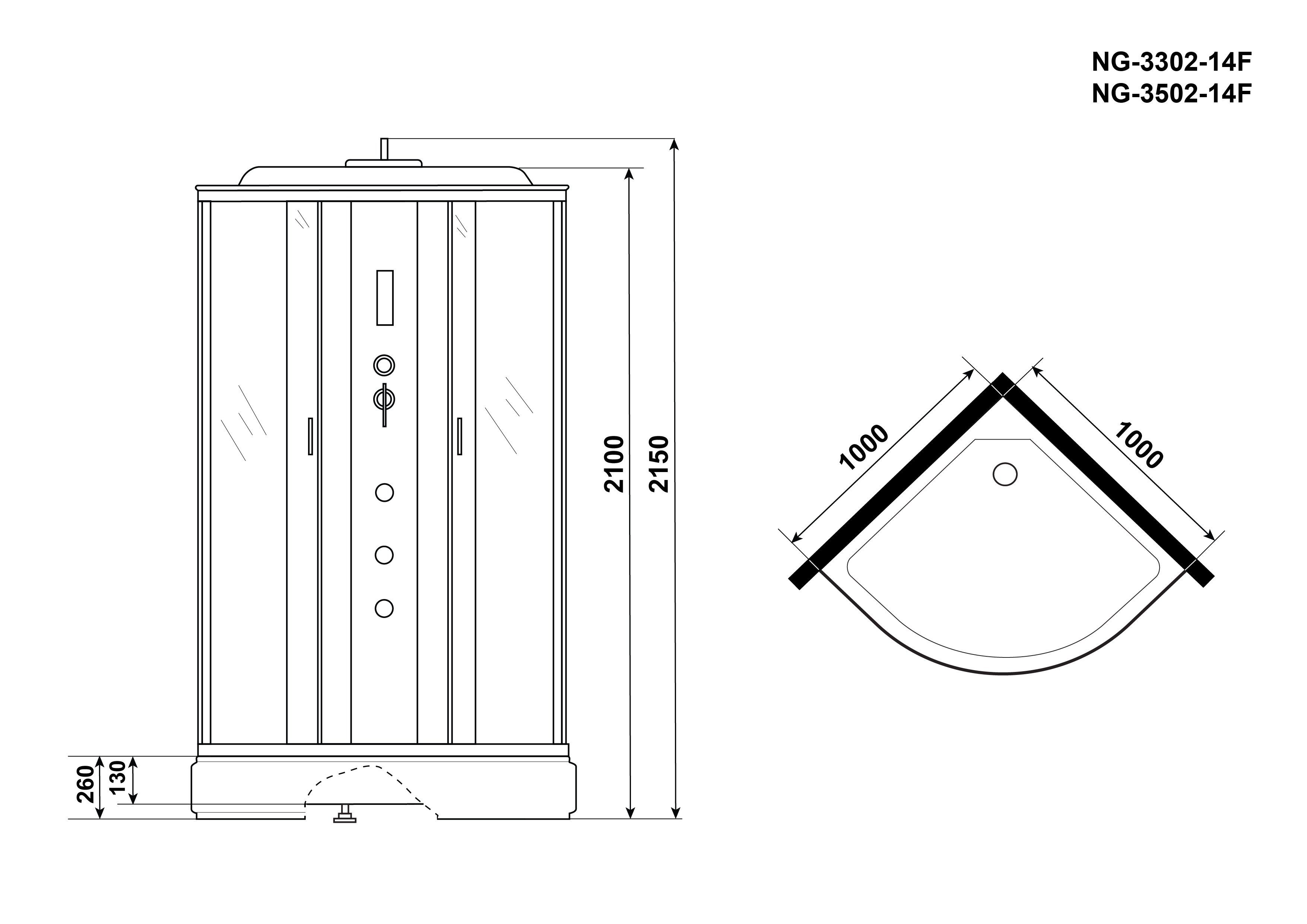 Душ.каб. NG-3302-14F (1000х1000х2150) средний поддон(26см) стекло МАТОВОЕ 4 места
