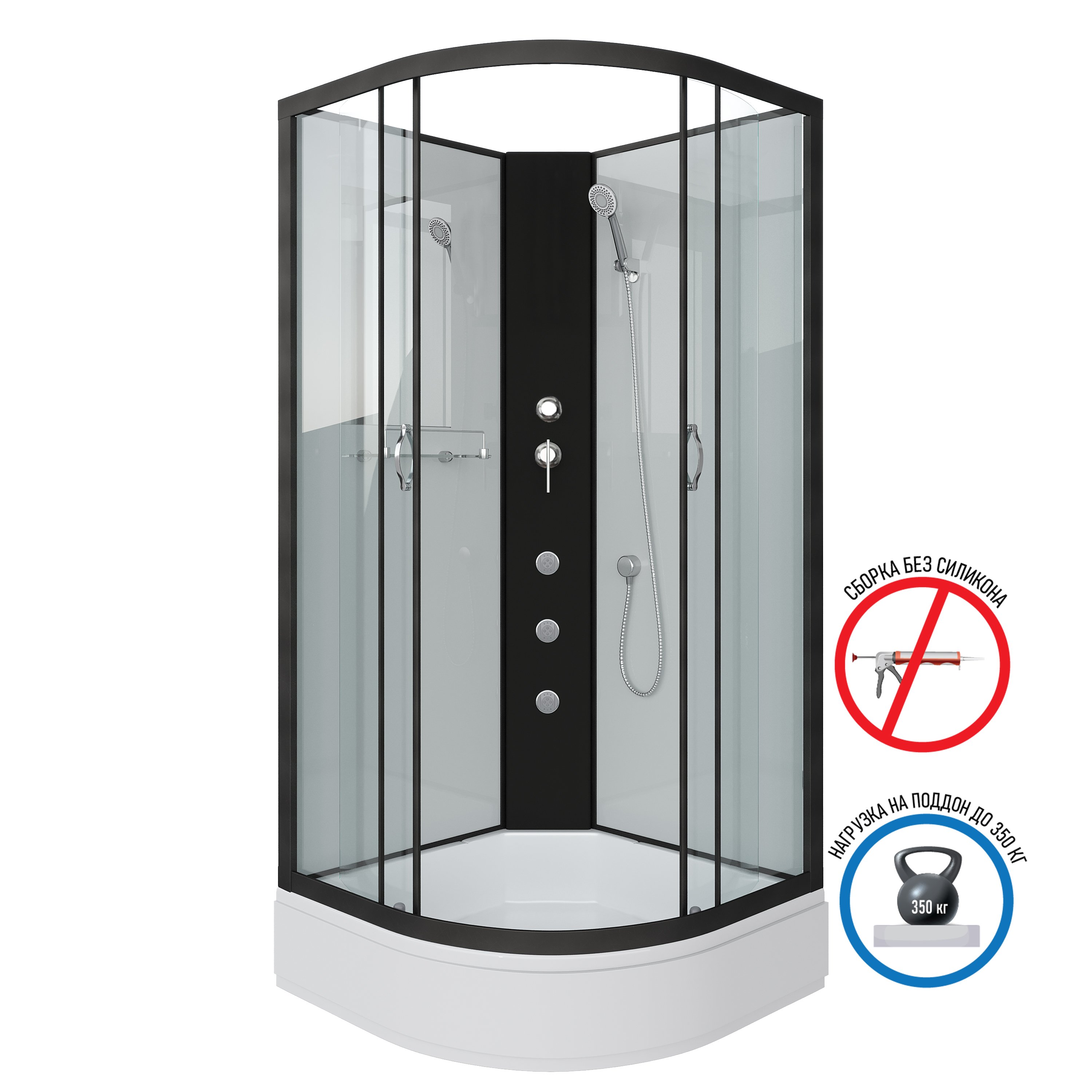 Душ.каб. NG-6702-14BKG (1000х1000х2000) средний поддон(26см) стекло ПРОЗРАЧНОЕ черные профиля 4 мест