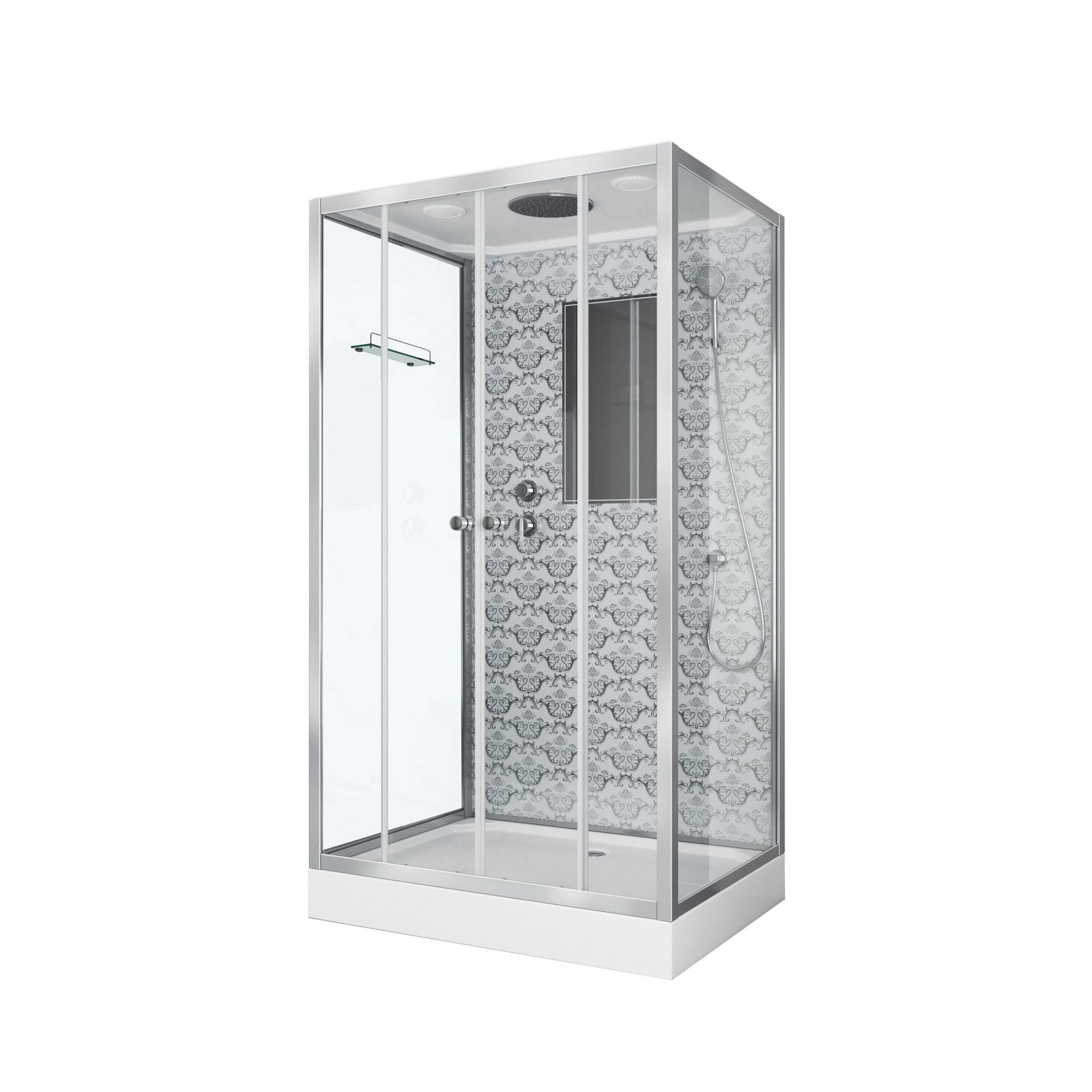 Душ.каб. NG-7772QW (1200x900х2100) низкий поддон стенки СЕРЕБРО 4 места