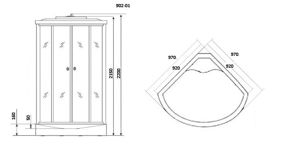 Душ.каб. NG-902-01 (1000х1000х2200) низкий поддон(16см) стекло ТОНИРОВАННОЕ 5 мест