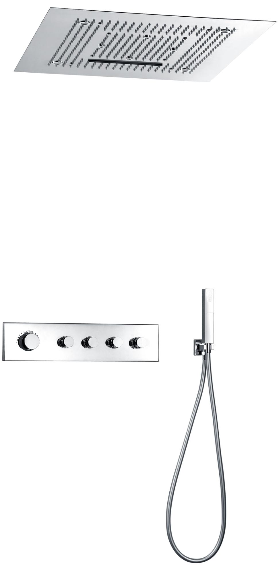 Дополнительные свойства : система ToccoFreddo, латунный 6-ти режимный верхний душ, гибкий полимерный шланг с защитой от залома и гладкой поверхностью, двухрежимный латунный ручной душ с режимом струи Комплектация: встраиваемая часть, термостатический смес