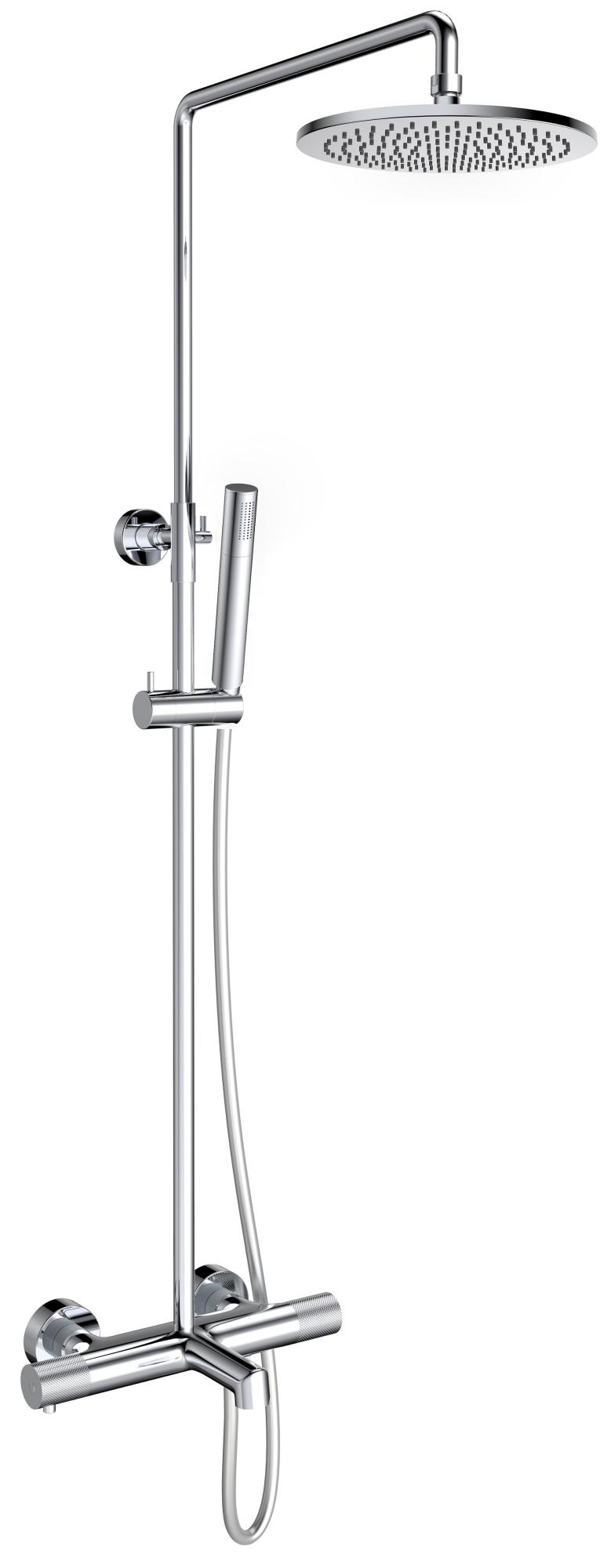 Дополнительные свойства: система ToccoFreddo, система Telescopico, система Gioco верхнего душа +/-15º,  латунный верхний душ, гибкий полимерный шланг с защитой от заломов   Комплектация: термостатический смеситель, телескопическая штанга с держателем для