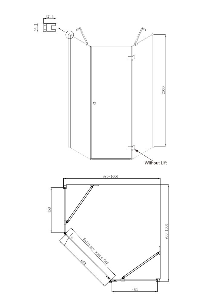 Душ. ограждение Ambassador Diamond 12011112R (1000x1000x2000), 1 место