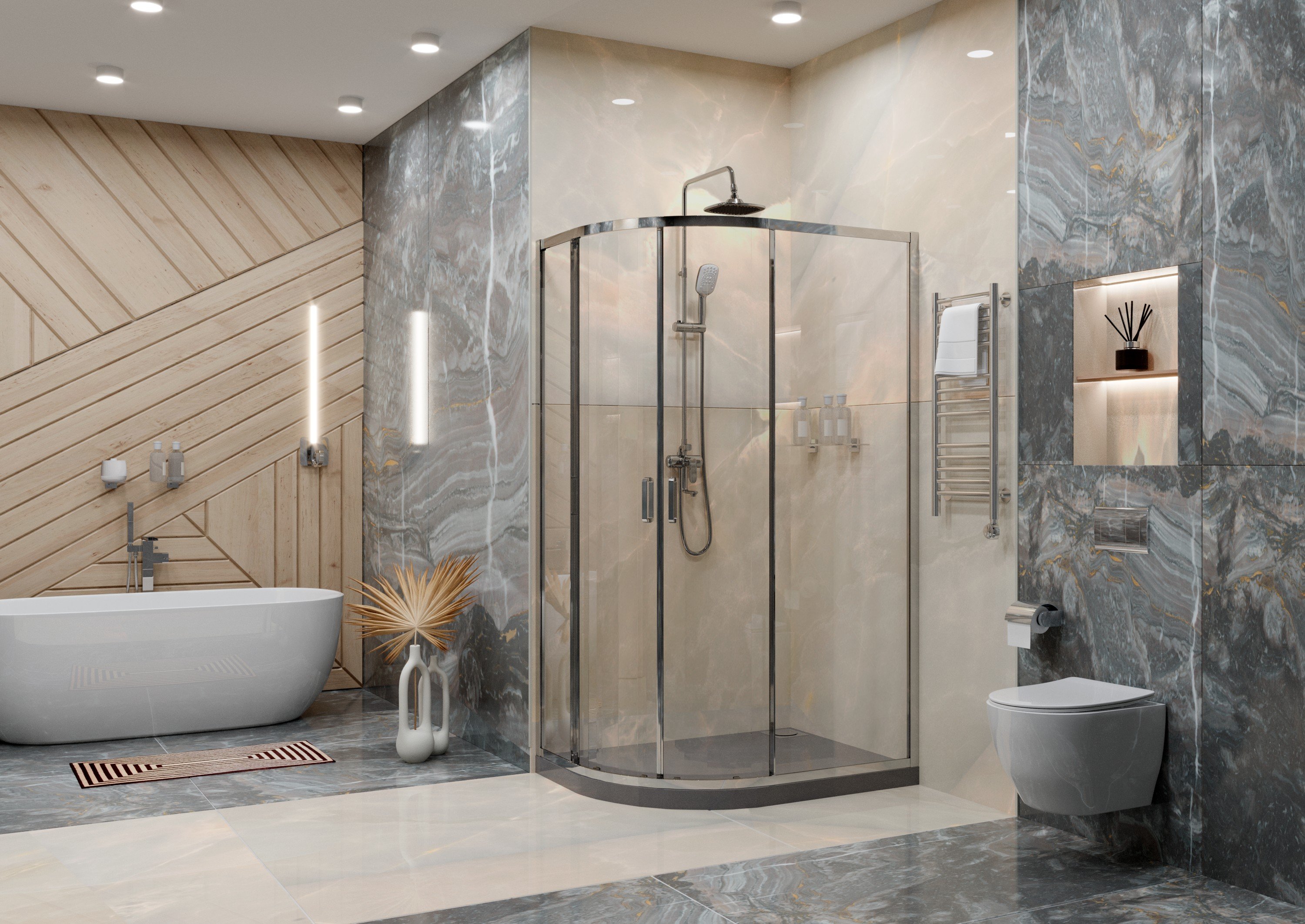 Душевые двериДушевые кабиныДушевые перегородкиДушевые поддоныКомплектующие для душевых кабин и уголков