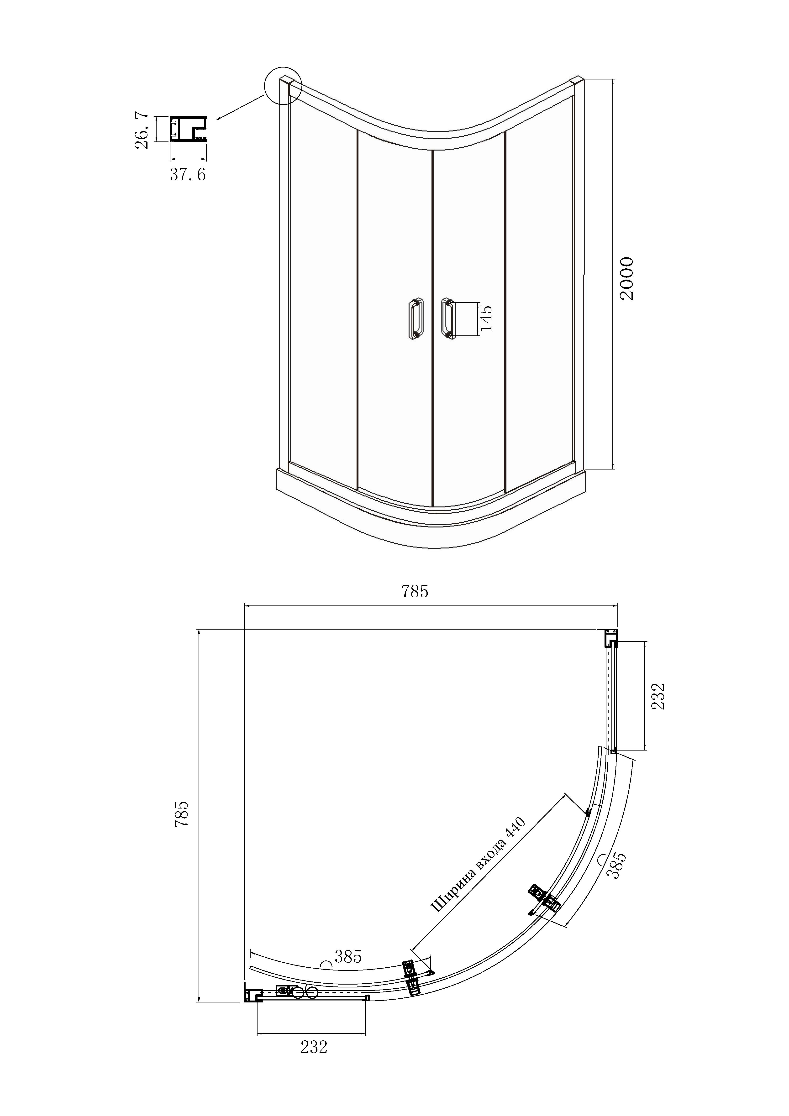 Душ. ограждение Ambassador Kingston 14011206 (800x800x2000), 1 место
