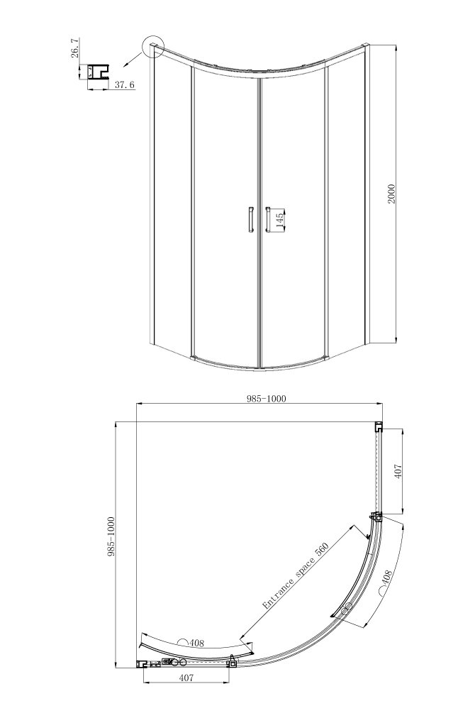 Душ. ограждение Ambassador Queen 11011102 (1000x1000x2000), 1 место