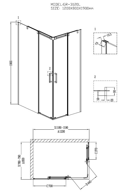 Душ.ограждение GR-3120L Galaxy 120*80*190 прямоугольник, двери раздвижные 2 места