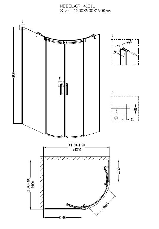 Акриловый душевой поддон Grossman 120x90 для GR-4121L |