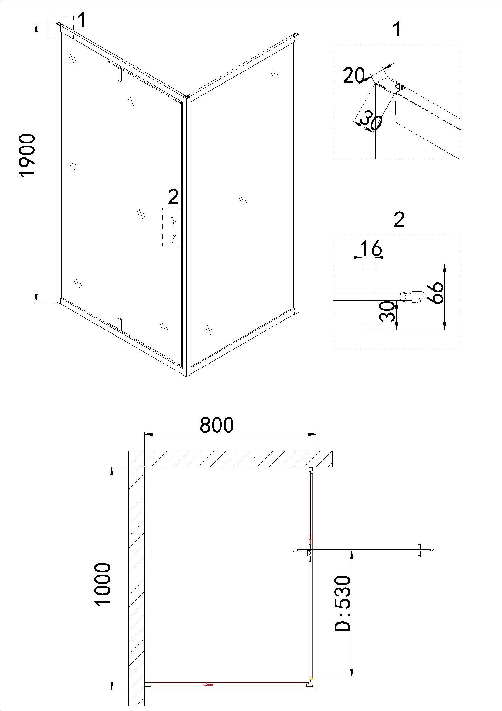 Душ.ограждение NG-43-10AG-A80G (100*80*190) прямоугольник, дверь распашная, 2 места
