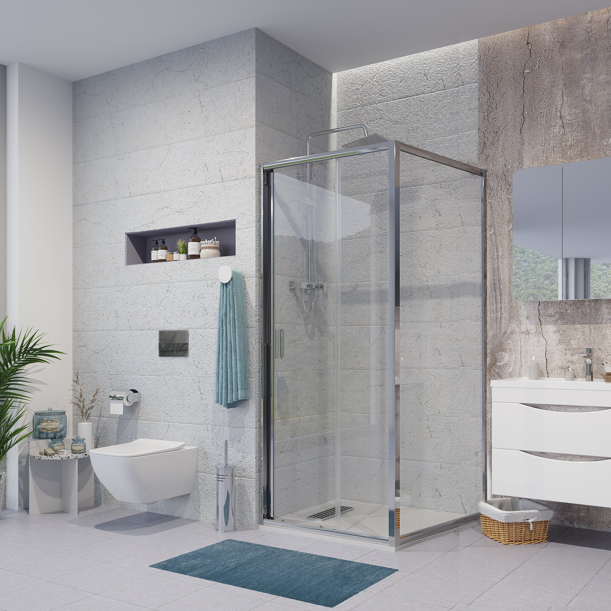 Душевые двериДушевые кабиныДушевые перегородкиДушевые поддоныКомплектующие для душевых кабин и уголков