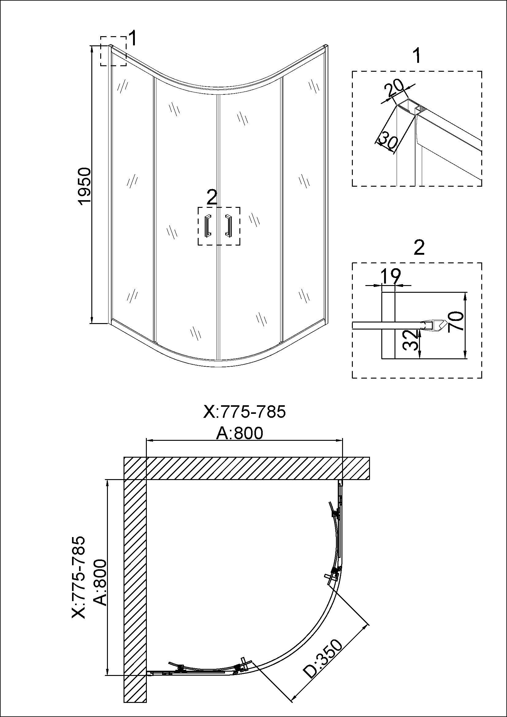 Душ. ограждение NG-6686-08 (80*80*195) полукруг, двери раздвижные, 1 место