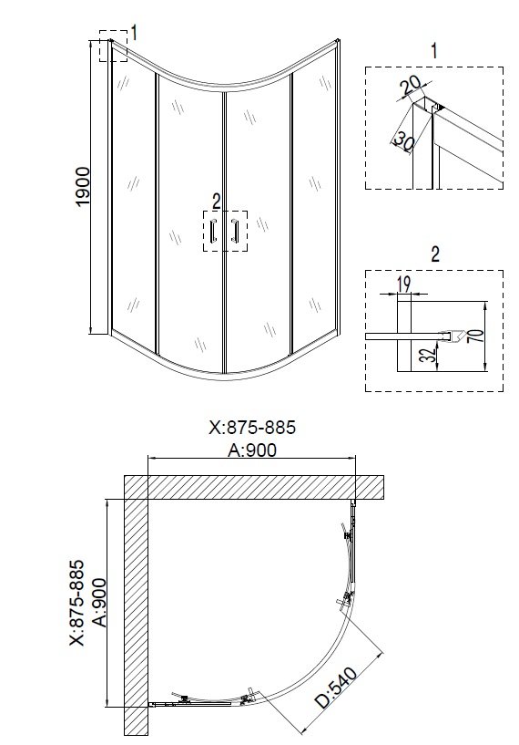 Душ. ограждение NG-6806-08 BLACK (90*90*190) полукруг, двери раздвижные, 1 место