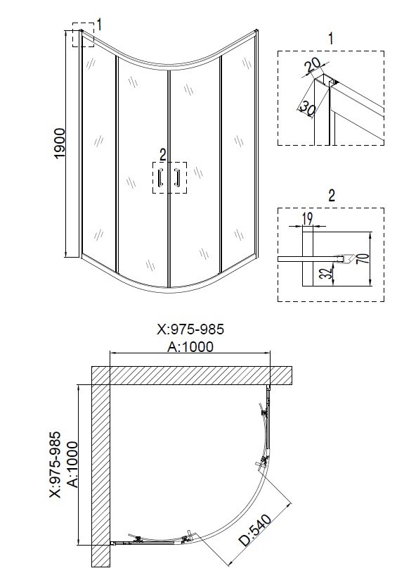 Душ. ограждение NG-6807-08 BLACK (100*100*190) полукруг, двери раздвижные, 1 место