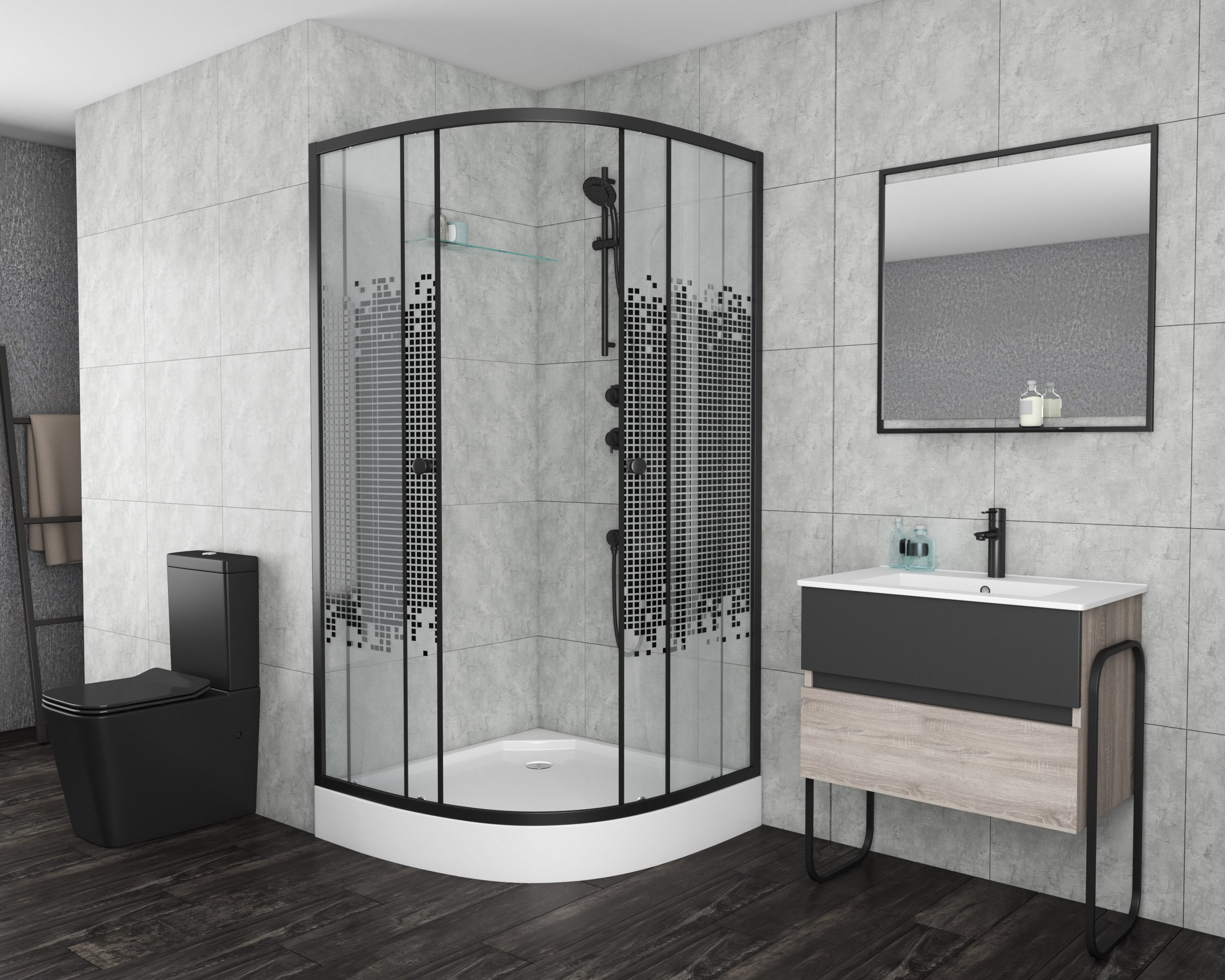Душ. уголок NG-003-14BLACK (800х800х1950) низкий поддон(13см) стекло МОЗАИКА 2 места