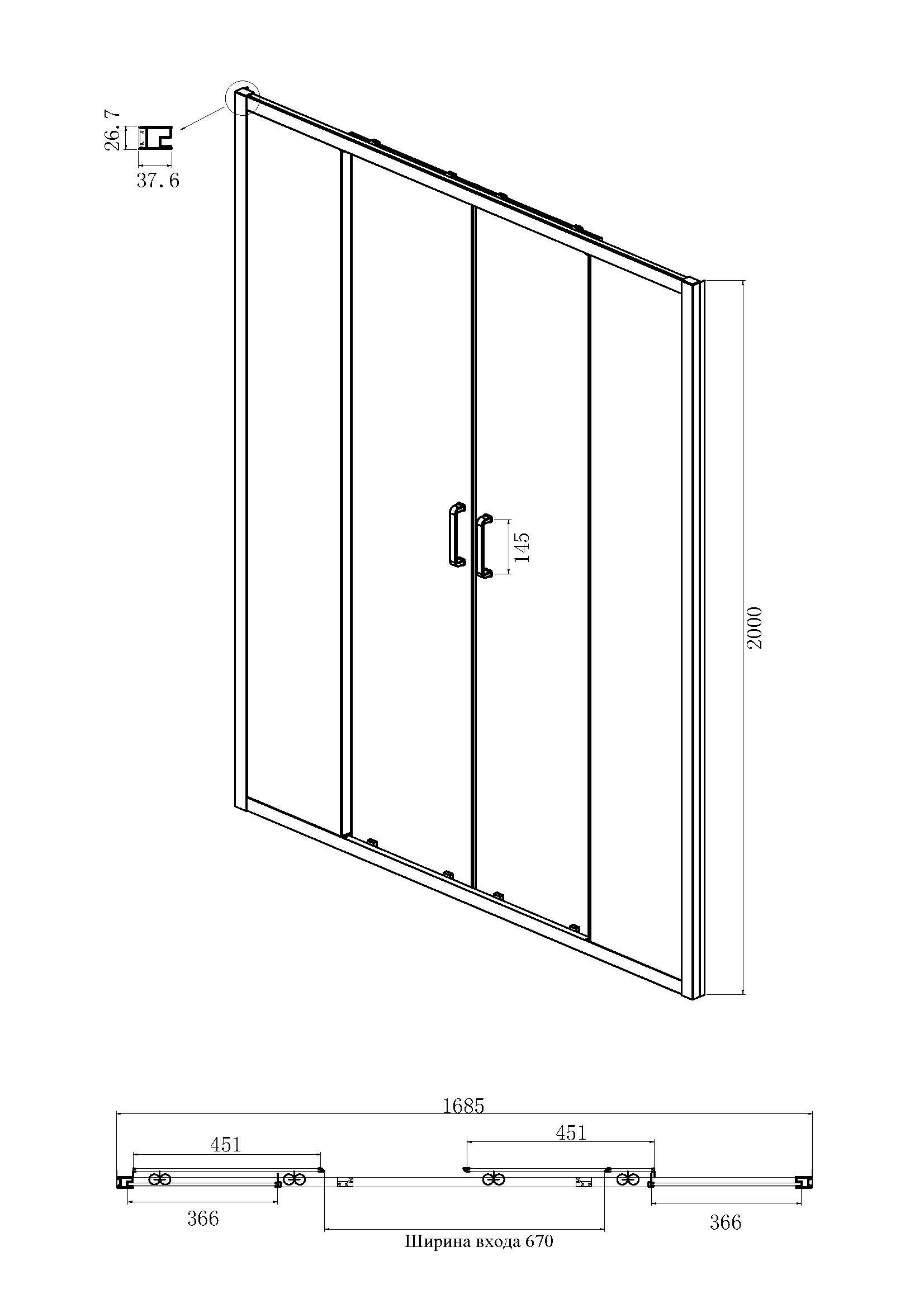 —Душевая дверь в нишу Ambassador Forsa 17021112AX 170x200, стекло прозрачное, профиль хром
