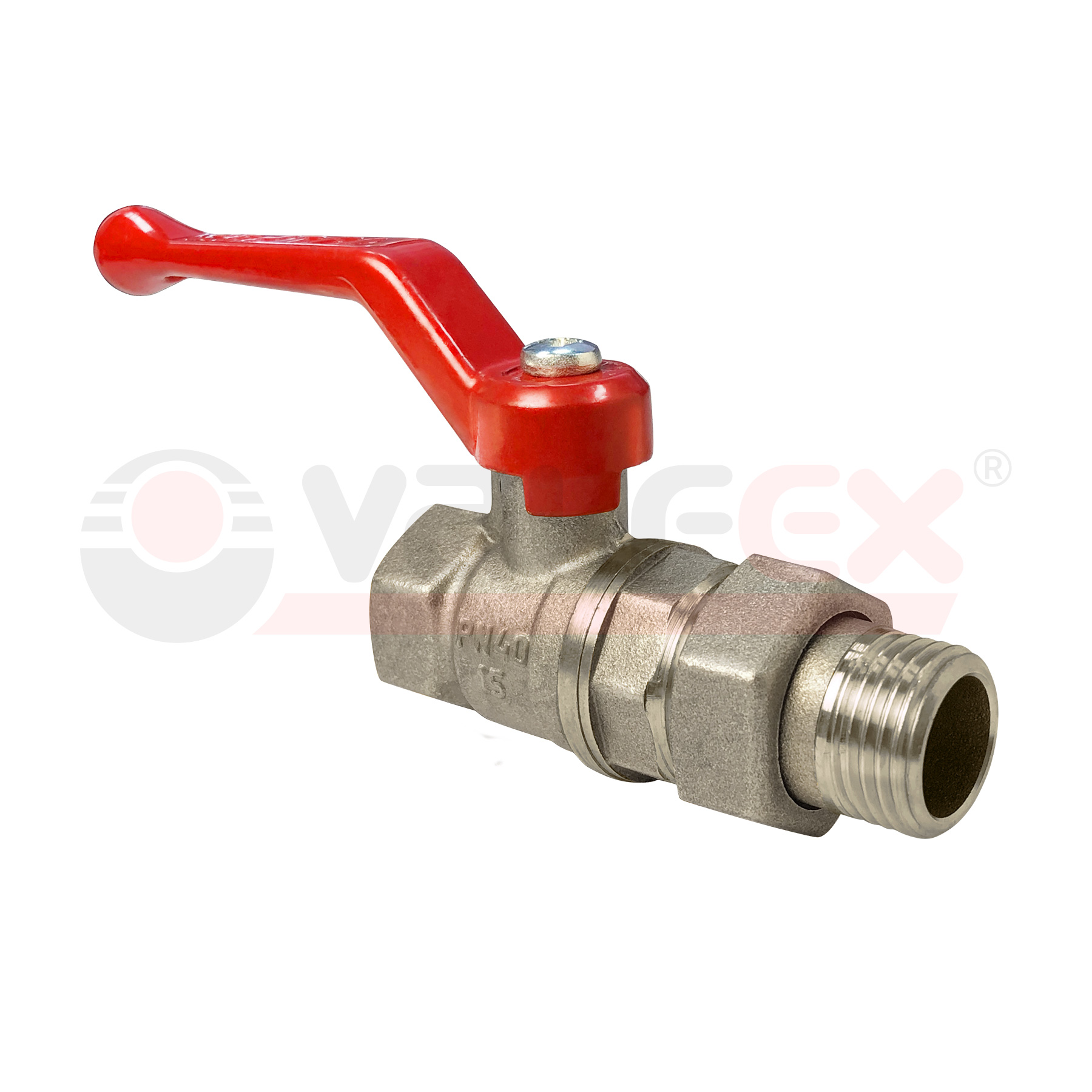 Кран шаровой латунный с американкой VALFEX никел. покрытие ВН/НР ручка-рычаг, 1 1/4'' (8/2)