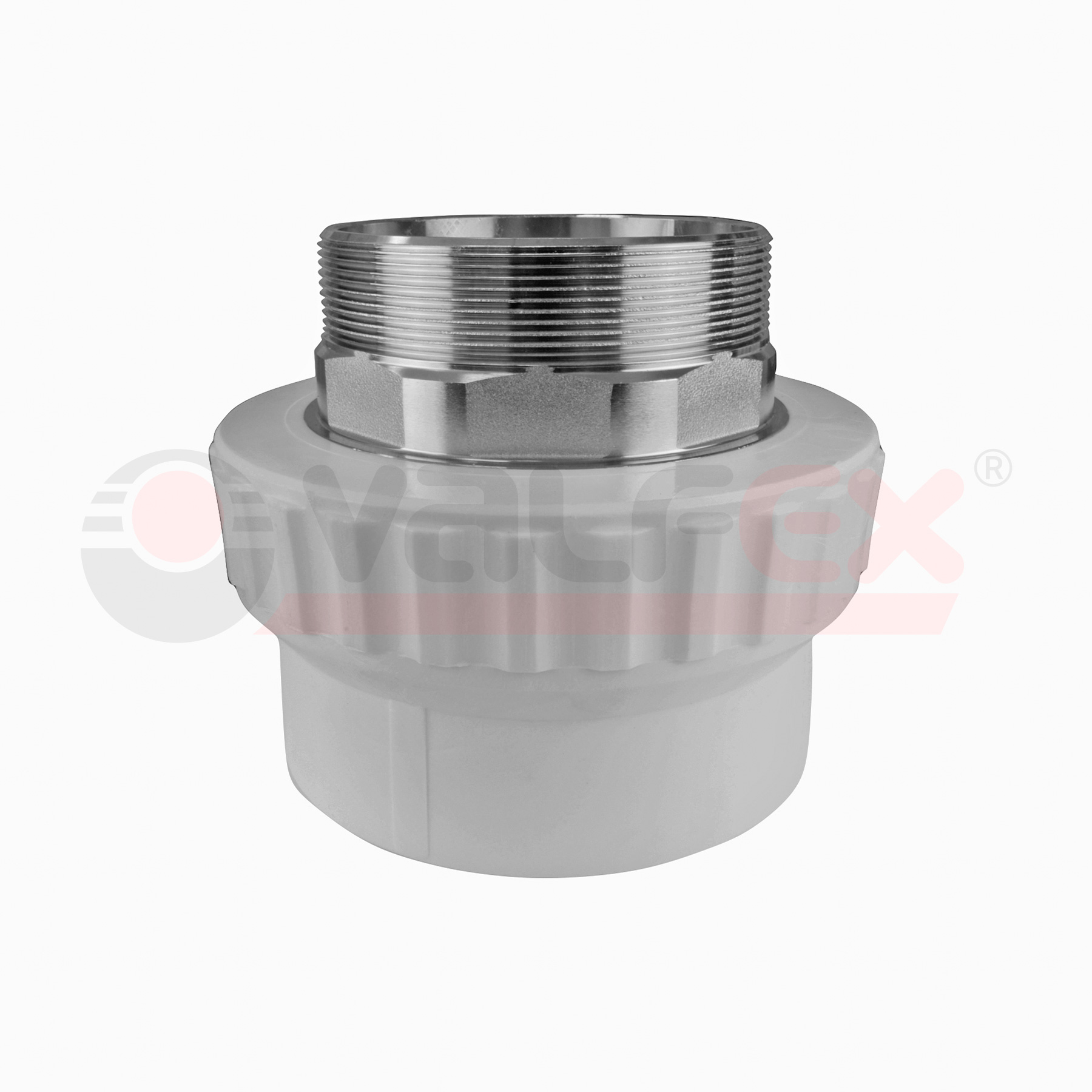 Муфта полипропиленовая переходная НР 50х1 1/2" под ключ Valfex, серая