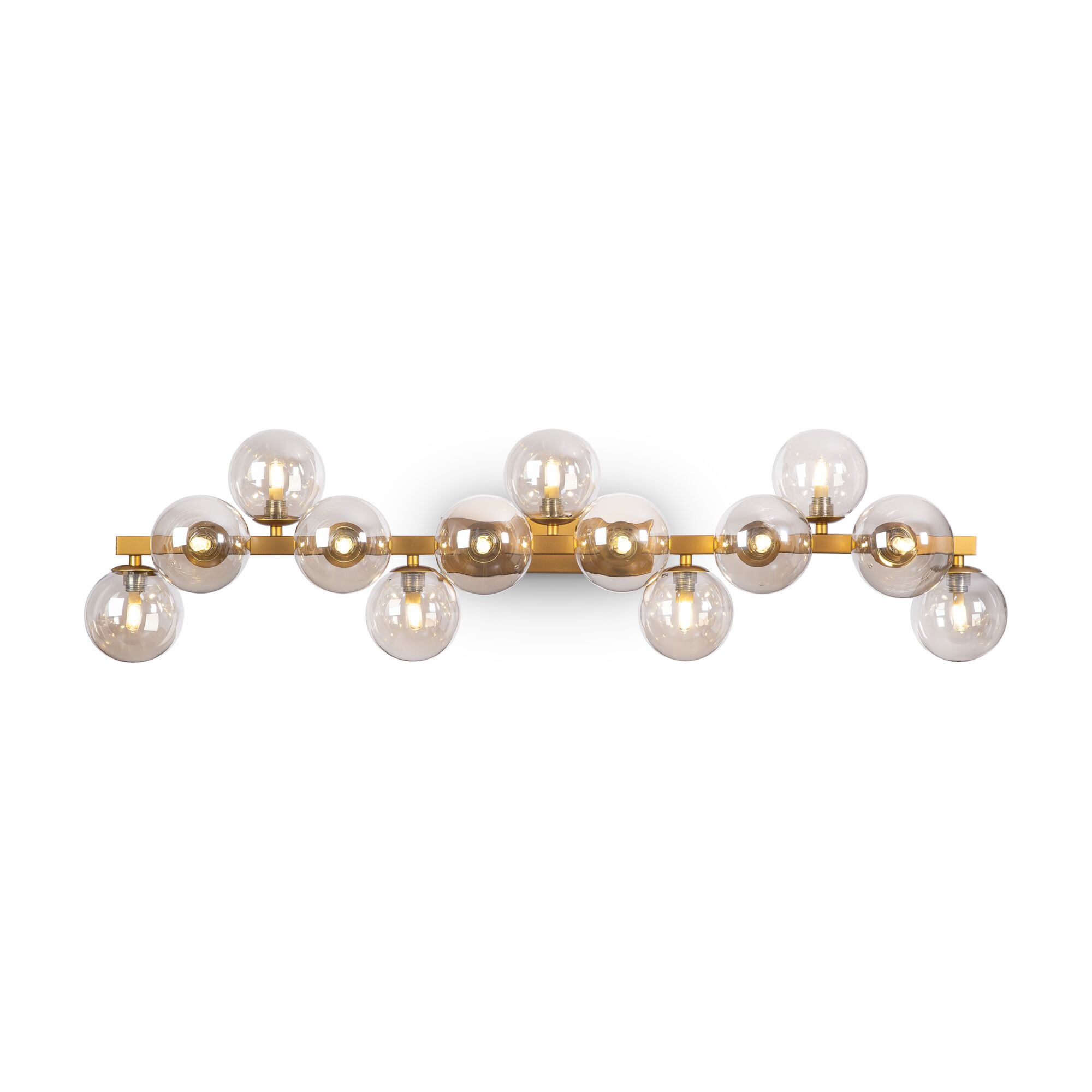 Масштабные скульптурные композиции, образованные многочисленными шарами из выдувного стекла, формируют неповторимый облик светильников серии. На полированных металлических ветвях установлены тонированные плафоны, которые мягко рассеивают и приглушают свет ламп. Модели серии представлены в трех цветах: золото, хром и латунь. Высота подвесных светильников регулируется длиной троса. Серия представлена потолочными, подвесными светильниками, и бра.
