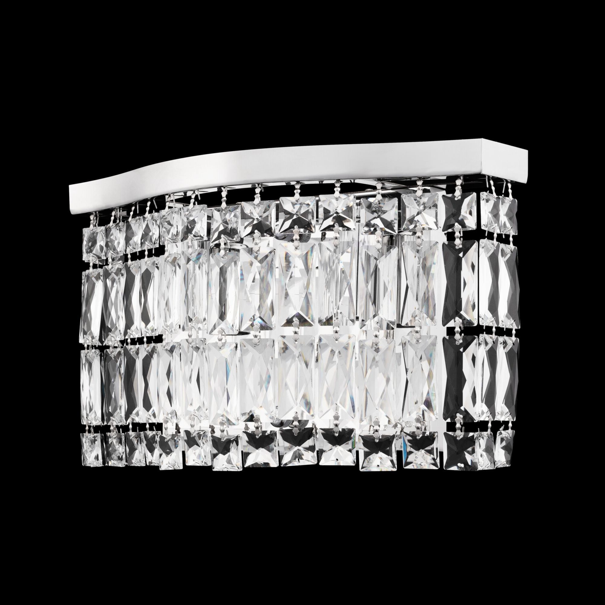 Кристаллы различных форм плотным занавесом свисают с фигурного основания, наполняя интерьер атмосферой роскоши. Арматура светильников изготовлена из хромированного металла, который отражает свет ламп. Модель DIA005PL-06CH дополнена стальными тросами, которые можно отрегулировать по длине.