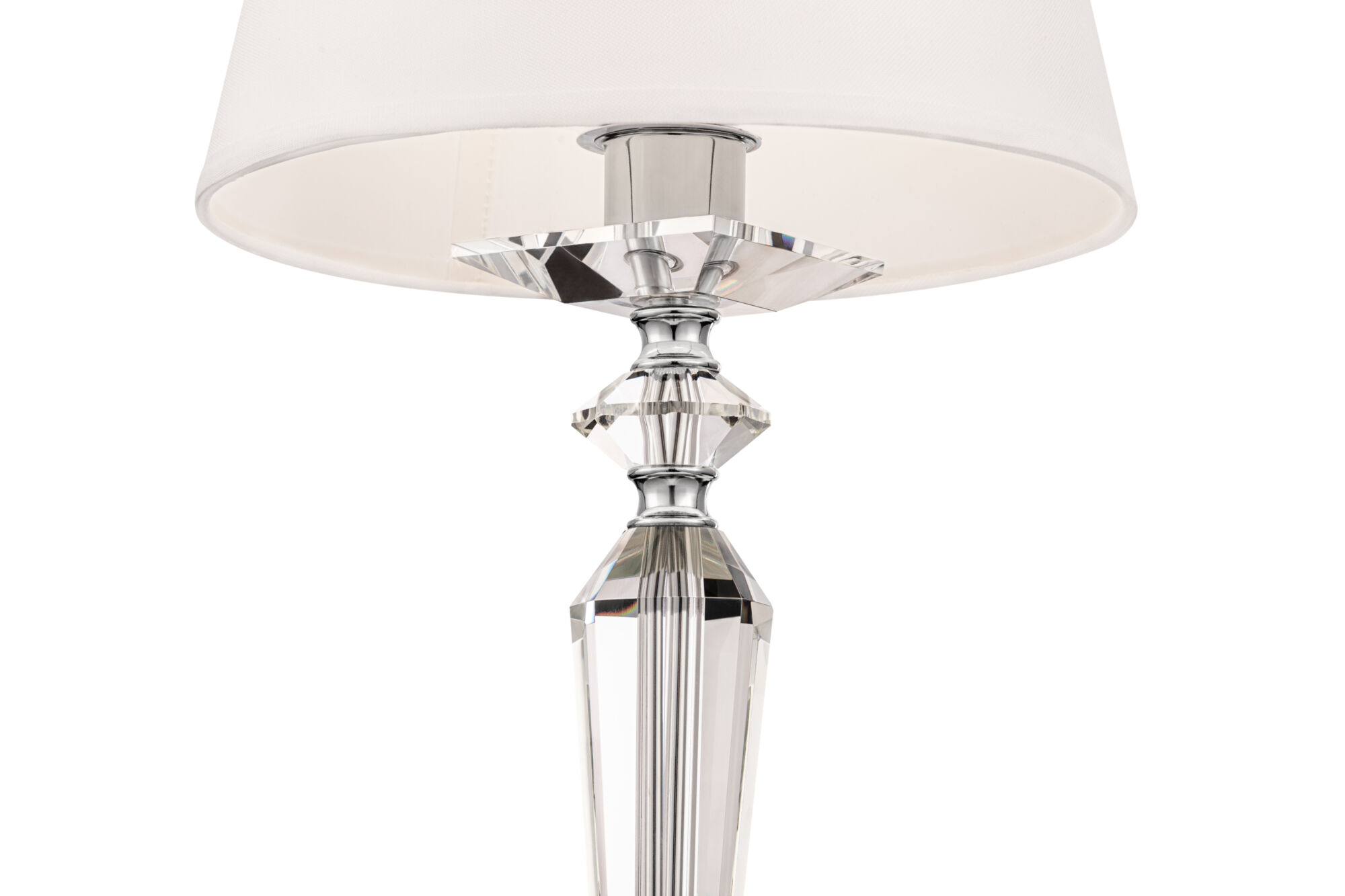 Светильники серии обладают легким, современным обликом, сочетающим в себе элегантность классики и линейность конструктивизма. Арматура изготовлена из металла с гальваническим покрытием цвета никель. Массивные трапециевидные элементы из прозрачного стекла украшают основание и рожки. Абажуры из белого льна, нанесенного на ПВХ, мягко рассеивают свет ламп. Высоту люстр можно регулировать, изменяя длину цепи.