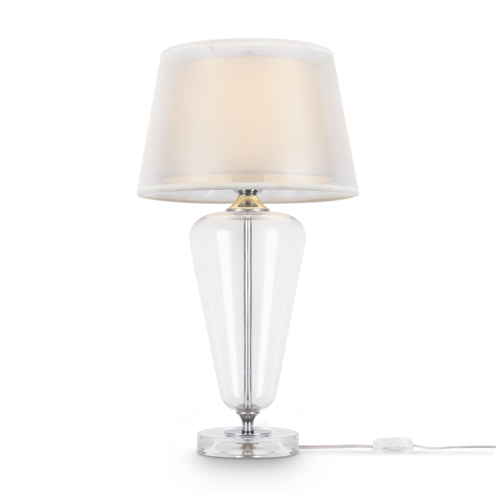 Самостоятельный арт-объект, предмет пристального внимания и настоящий образец современного искусства. Дизайн серии Verre — это минимализм в своем самом естественном, природном исполнении. Прозрачные материалы — выдувное стекло и литой акрил в основании корпуса — создают удивительный визуальный баланс между классическим силуэтом и оригинальным авторским решением. Двойной абажур, мягко рассеивающий световой поток, выполнен из текстиля 2 видов: полупрозрачной органзы и плотного льна на термоотводной акриловой подложке. Серия, где каждая деталь имеет значение: арматура в цвете латунь и хром, благодаря зеркальному эффекту, отражает соседние материалы, наполняя дизайн новым художественным смыслом. Лаконичность и ясность выразительных средств — материалы, формы, цвета — сделали эту серию предельно универсальной, способной легко вписаться в разные дизайн-проекты. Светильники снабжены цоколем для ламп E27.