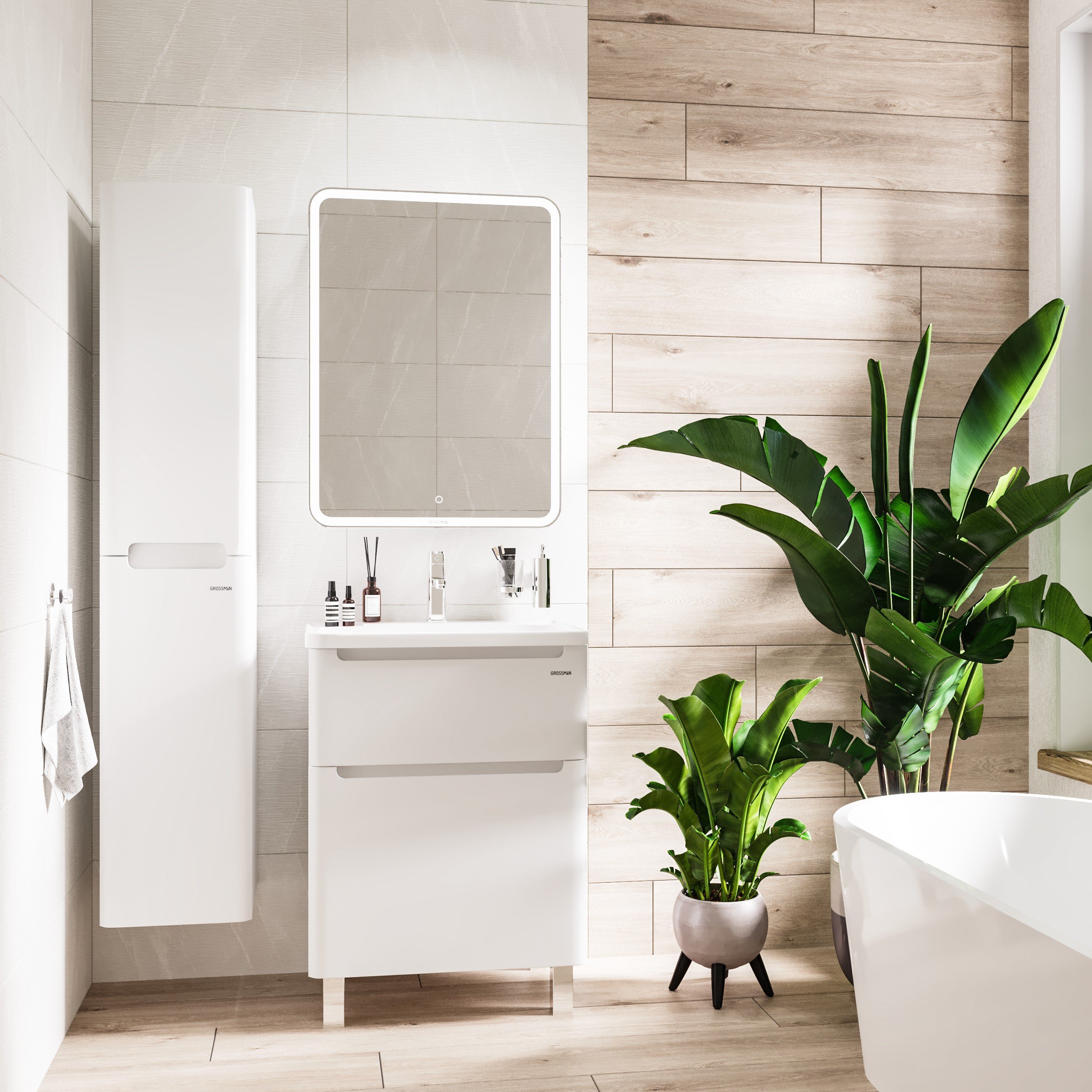 Зеркальный шкаф в ванну Grossman АДЕЛЬ-100 см с LED подсветкой |
