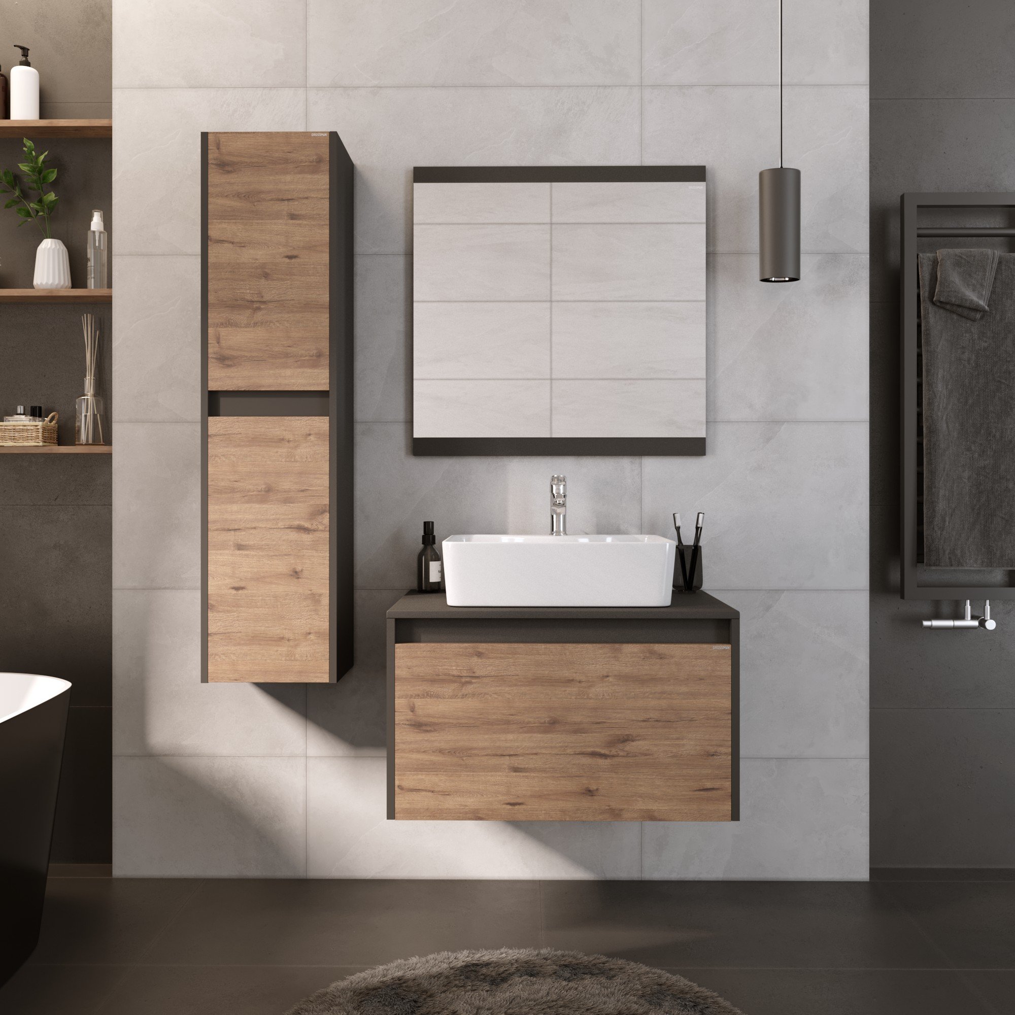 Шкаф-пенал подвесной Grossman СМАРТ-30 см, веллингтон/графит