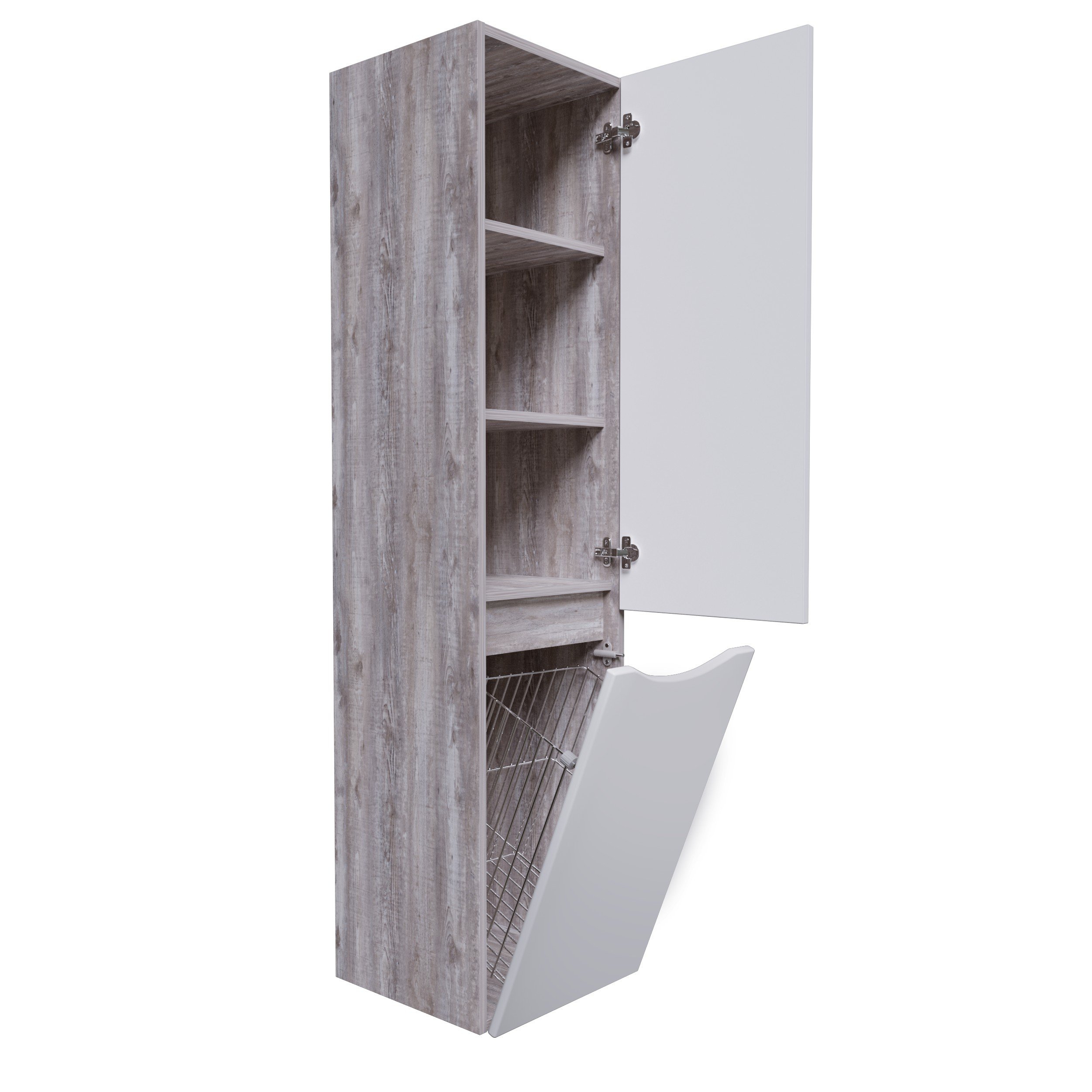 Пенал подвесной "ТАЛИС-35 см" с бельевой корзиной, универсальный бетон пайн/белый глянец