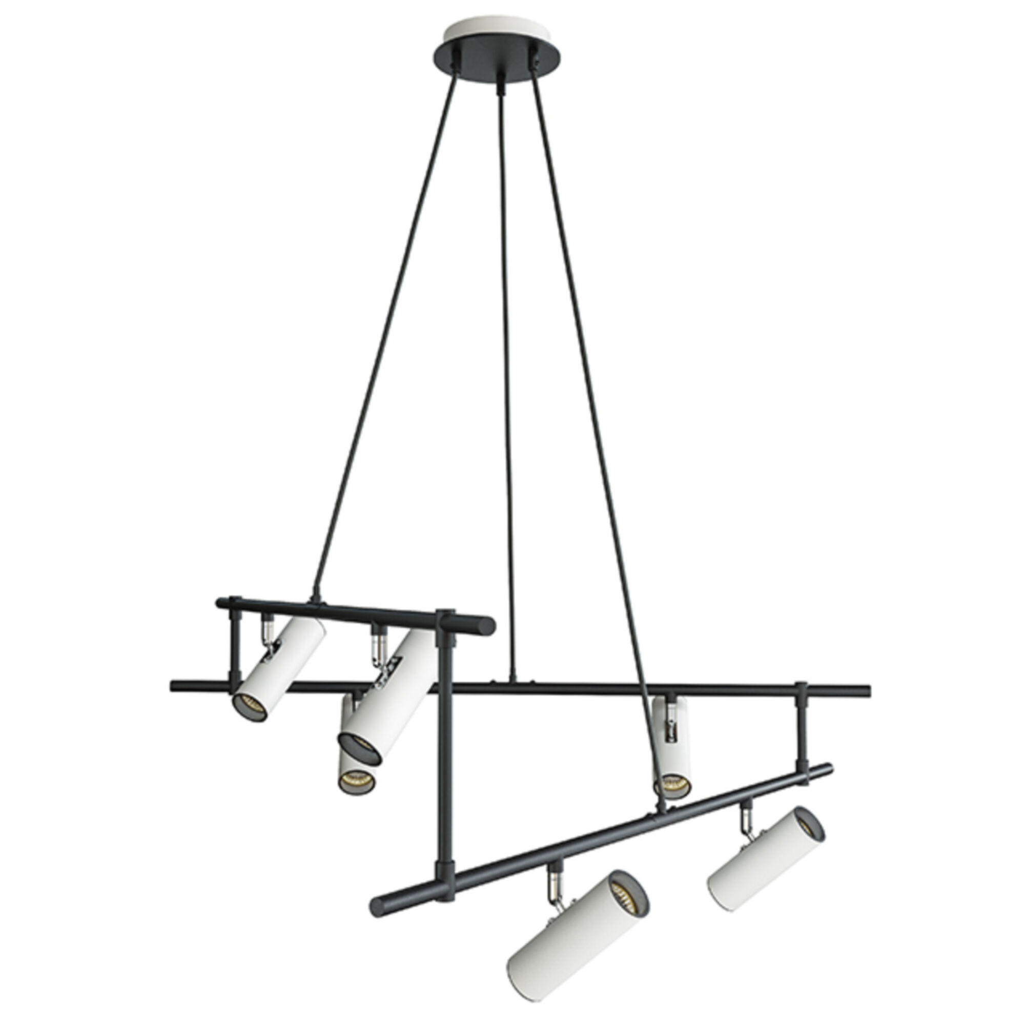 Прямые конструкции светильников Rami, расположенные на разной высоте, создают асимметричный силуэт, который наполняет пространство динамикой и свободой. Серия буквально в каждой детали раскрывает тонкие дизайнерские приемы на грани между декоративным и техническим освещением. Крепление к потолку располагается посередине моделей, позволяя без дополнительных монтажных работ использовать некоторые преимущества трековых светильников: каждый из источников света обладает самостоятельным поворотным механизмом. Rami органично впишется в интерьеры в стиле минимализм и постмодерн.