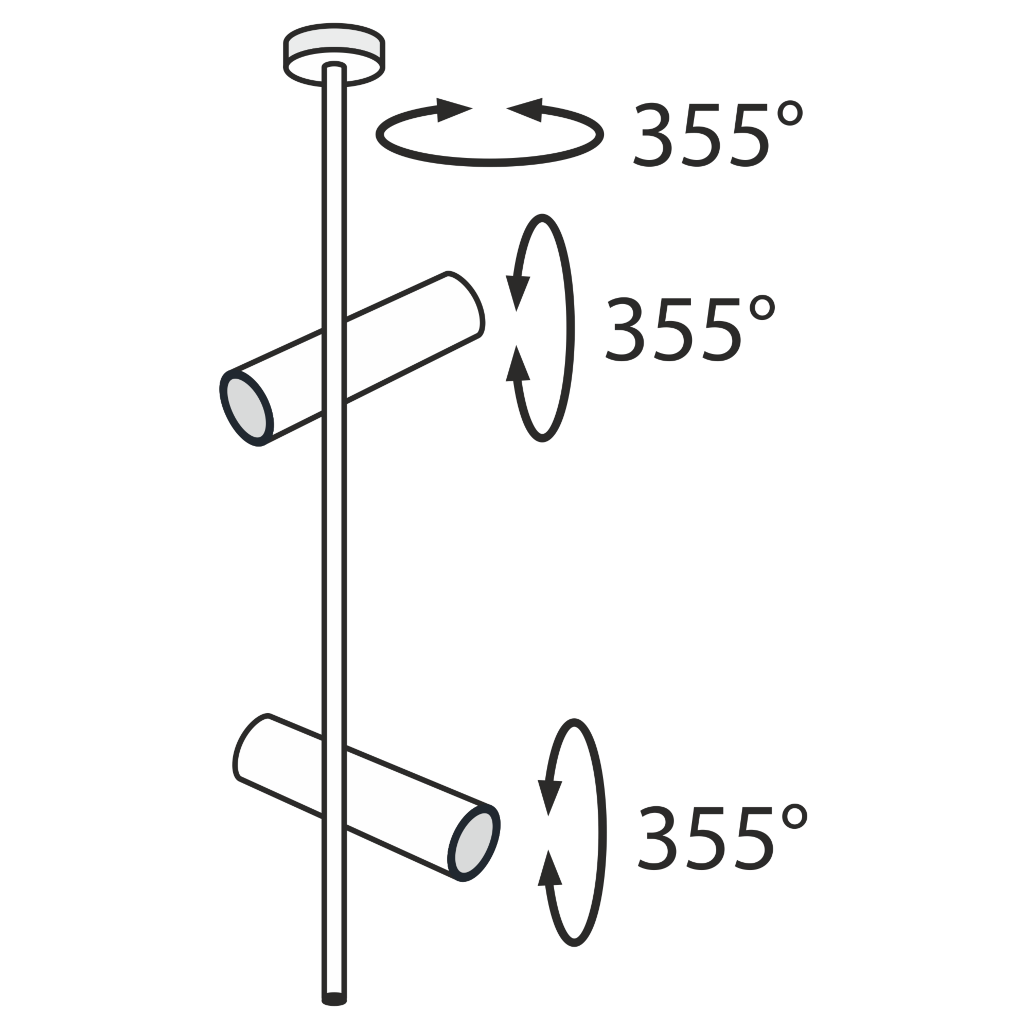 Потолочные накладные светильники на один и два плафона. Лампы устанавливаются в плафонах-цилиндрах, закрепленных на вертикальной планке. Конструкция обеспечивает гибкую регулировку светового потока на 360° в горизонтальной плоскости и на 180° в вертикальной. Светильники рекомендуется использовать с лампами Voltega (art. 7060/7061) мощностью 7W и углом рассеивания 38°. Диммируемые версии ламп — art. 7108/7109. Серия представлена в трех актуальных оттенках: черный, белый и трендовое матовое золото.