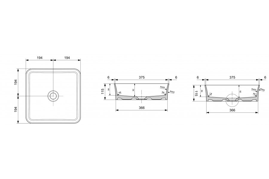 Раковина Ambassador Conrad 226T20002 (388*388*115) БЕЛАЯ