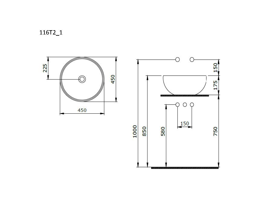 —Раковина накладная Ambassador Queen 116T20001 (450х450х175) белая