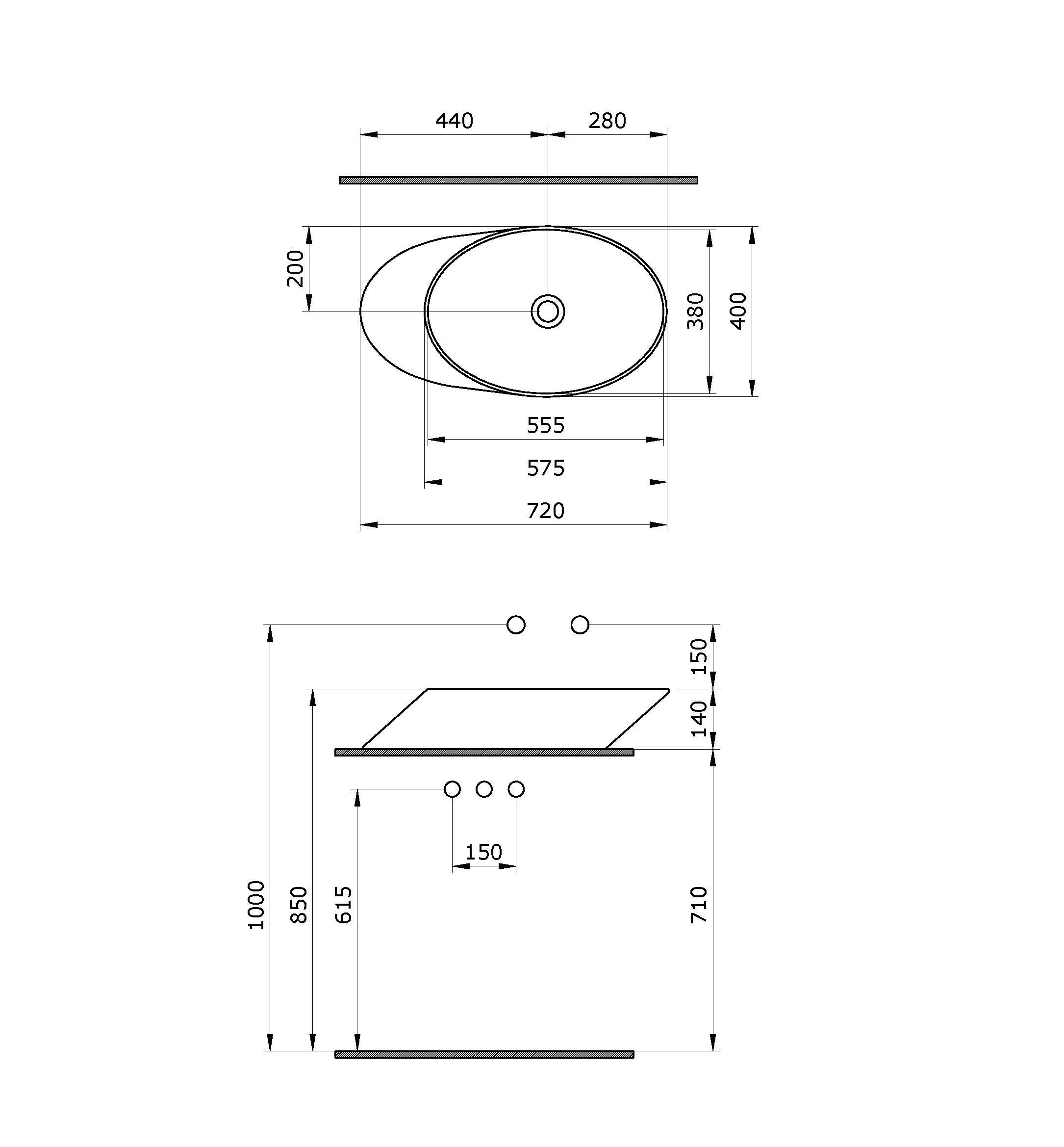 —Раковина накладная Ambassador Ritz 236T20002 (720х400х140) белая