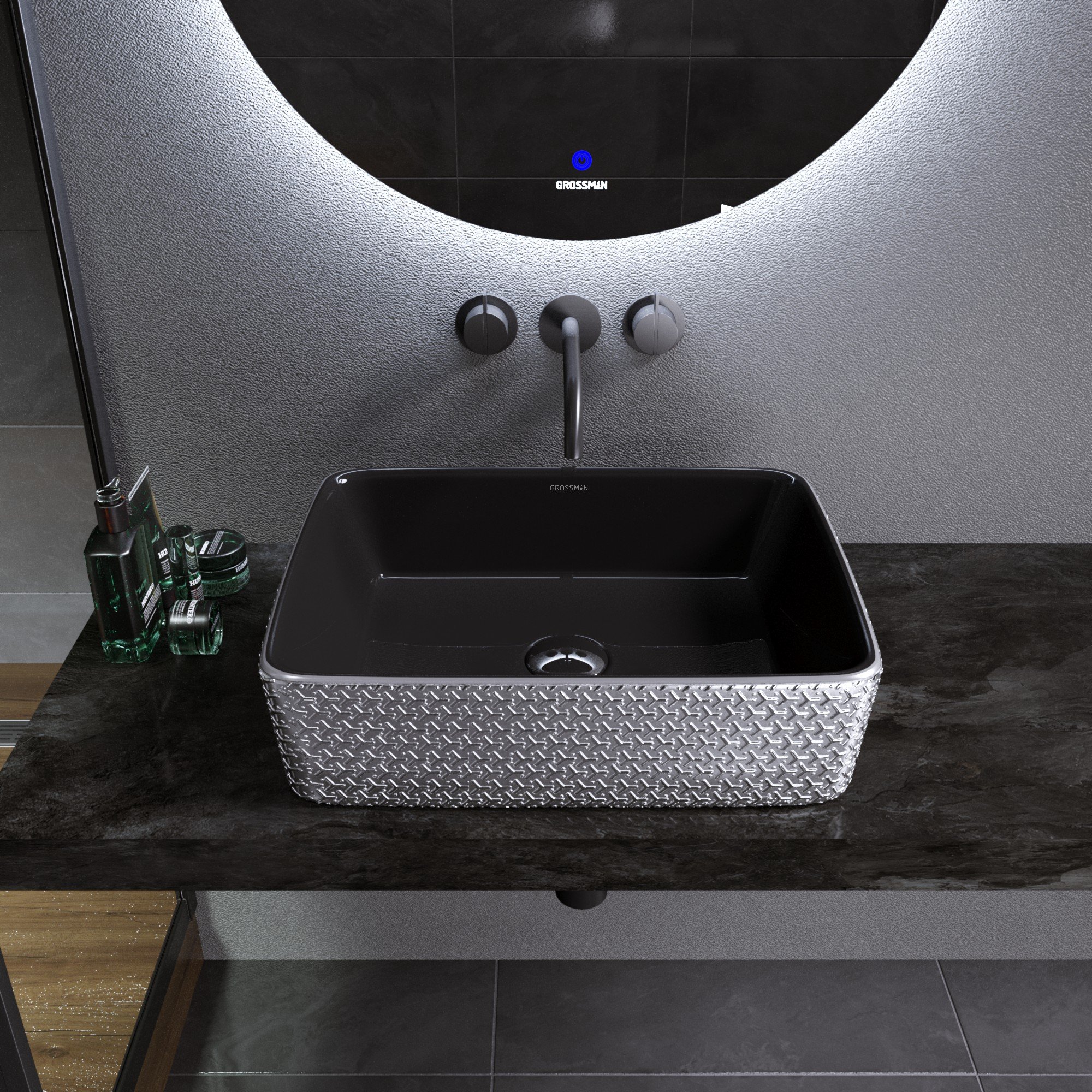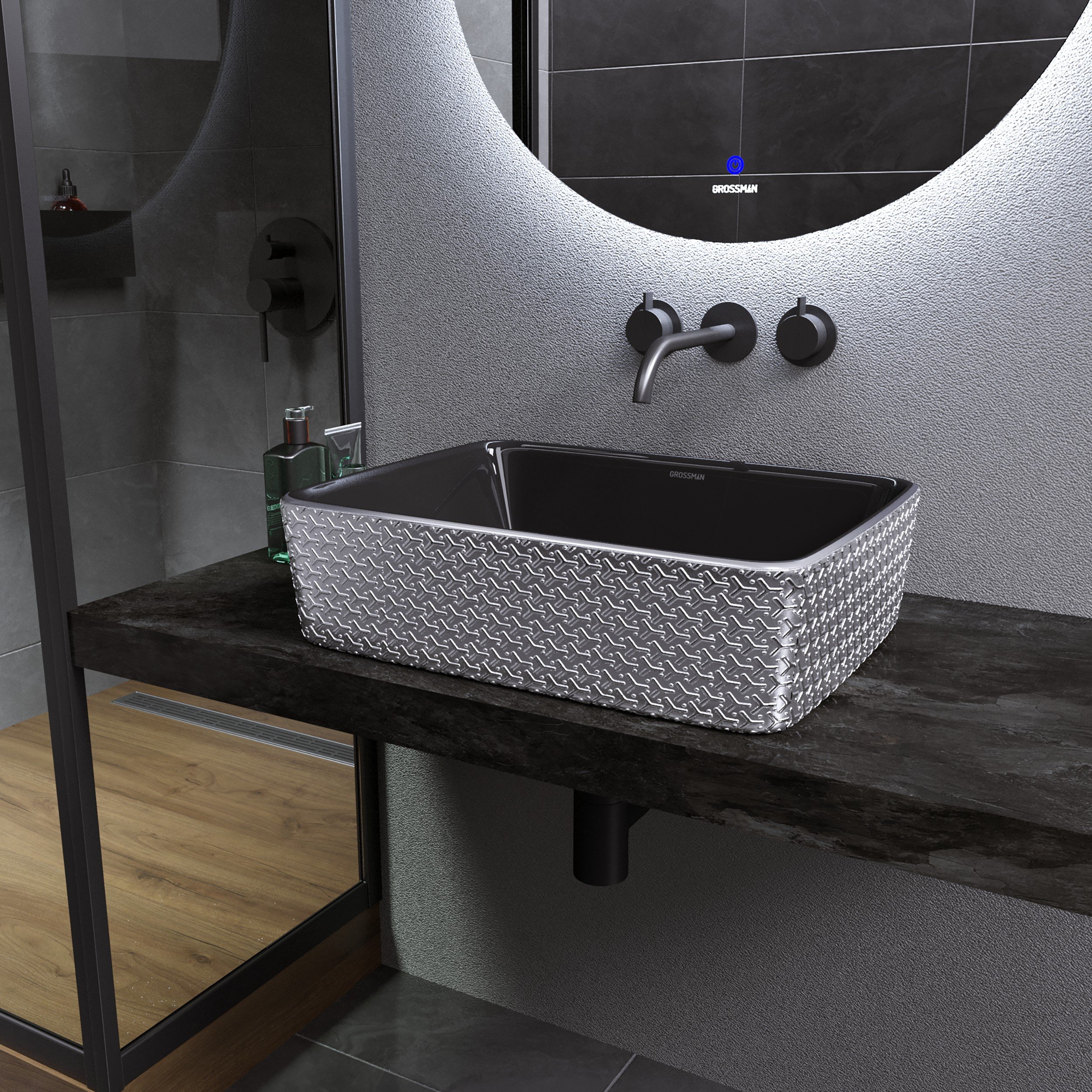 —Накладная раковина Grossman GR-3016SBR (480х370х130) серебро