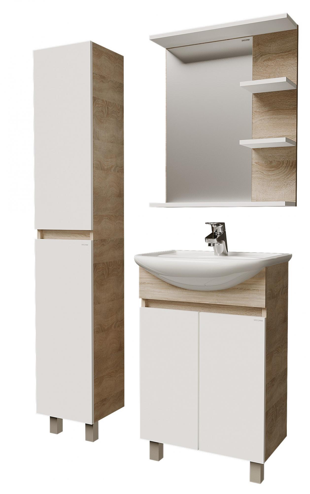 Тумба под раковину в ванной напольная Grossman ПОЛО-55 см, дуб сонома/белая |