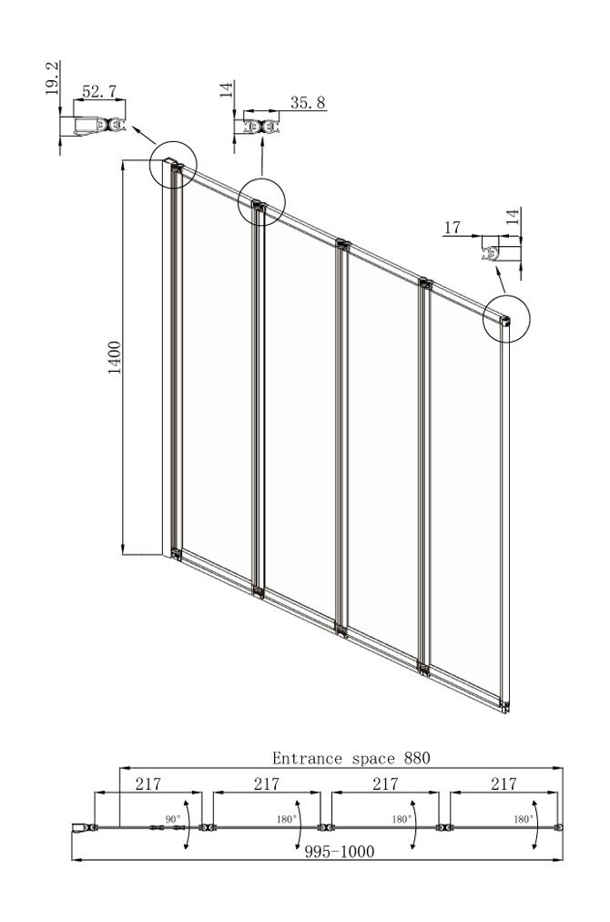 —Шторка на ванну Ambassador Bath Screens 16041111L (1000x1400), стекло прозрачное