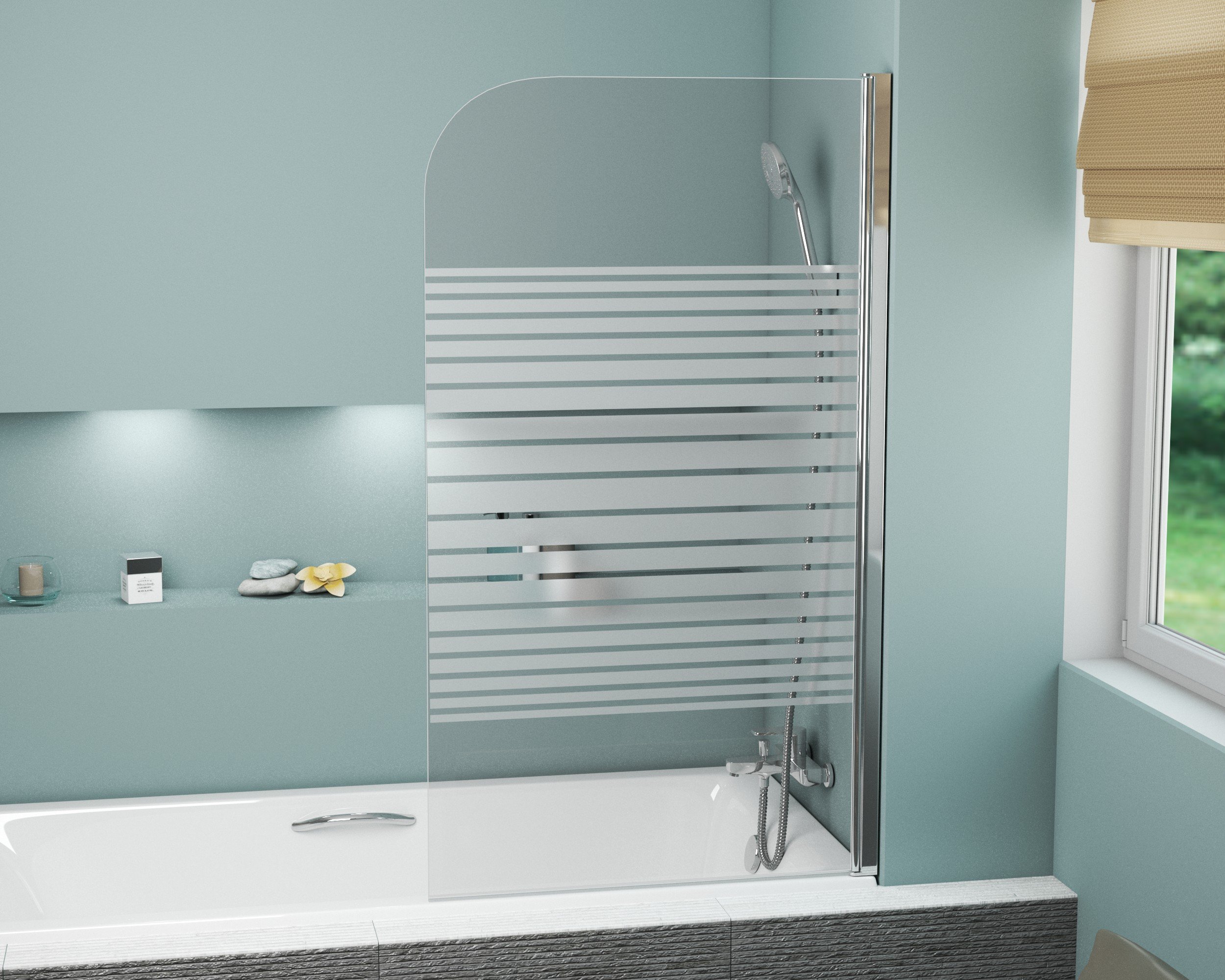Шторка для ванны GR-100P (140*80) алюминиевый профиль, стекло ПОЛОСАТОЕ 6мм 1 место