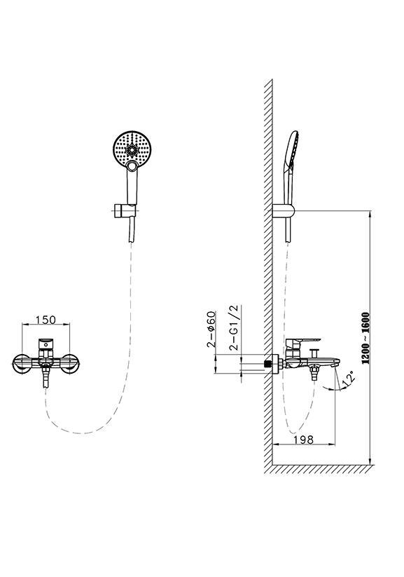 Дополнительные свойства: двухрежимный ручной душ, гибкий полимерный шланг с защитой от залома и гладкой поверхностью, аэратор с ограничением расхода воды, керамический картридж Комплектация: смеситель настенного монтажа, ручной душ, гибкий полимерный шлан
