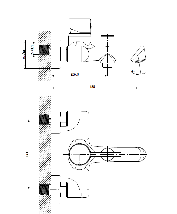 Дополнительные свойства: аэратор с ограничением расхода воды, керамический картридж  Комплектация: смеситель настенного монтажа, эксцентрики, чаши декоративные