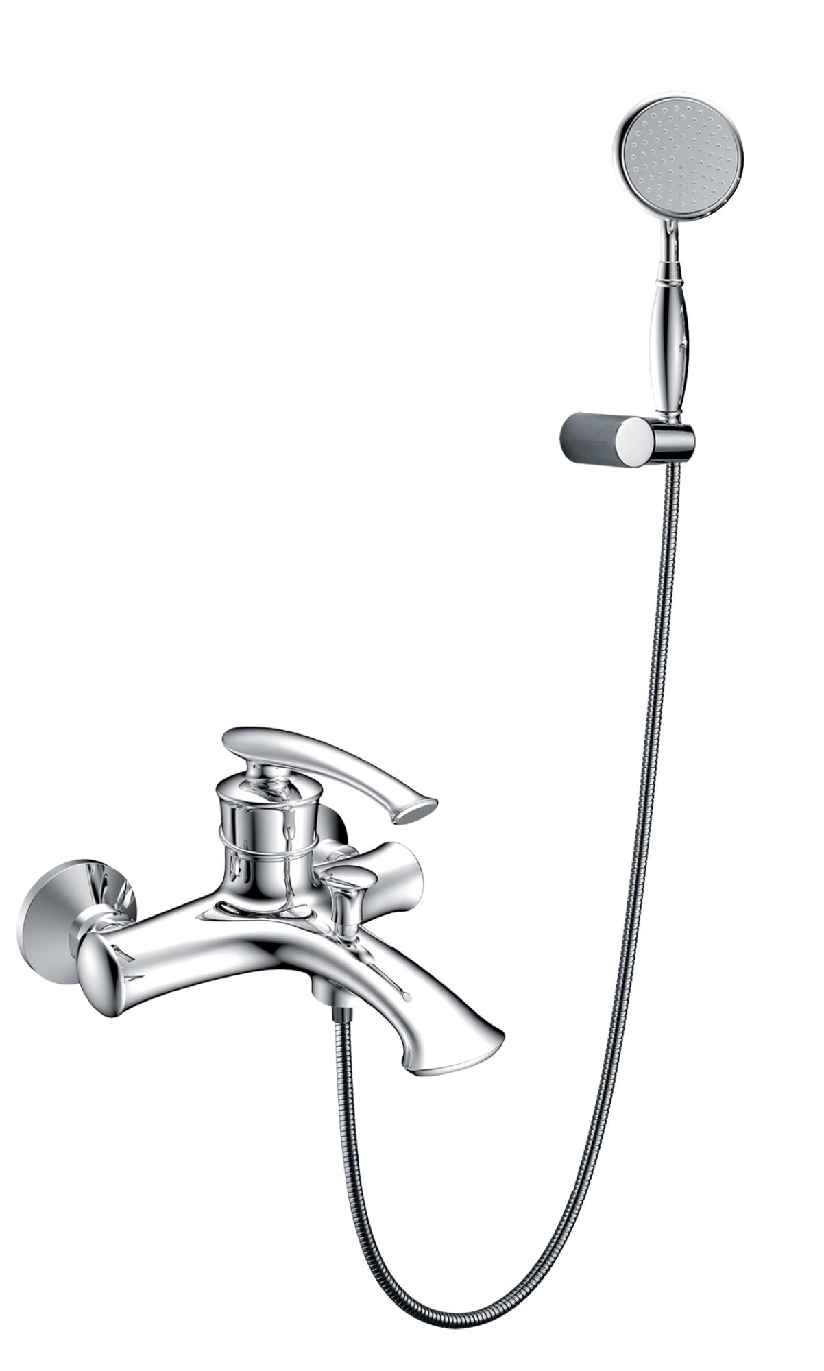 Дополнительные свойства: латунный ручной душ, аэратор с ограничением расхода воды, керамический картридж Комплектация: смеситель настенного монтажа, настенный держатель ручного душа, ручной душ, гибкий металлический шланг, эксцентрики, чаши декоративные