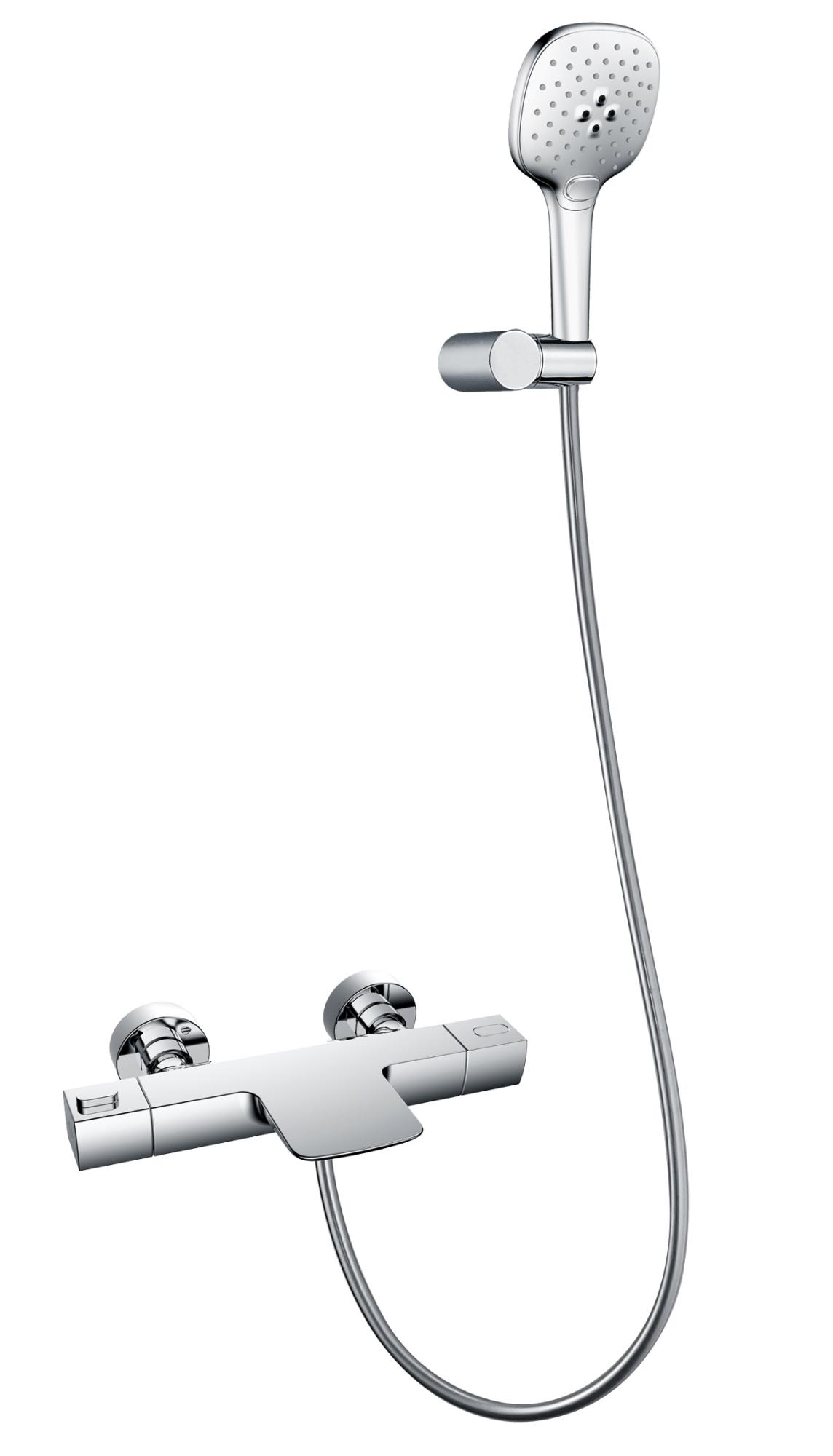 Дополнительные свойства: система ToccoFreddo, двухрежимный ручной душ, гибкий полимерный шланг с защитой от залома и гладкой поверхностью Комплектация: термостатический смеситель настенного монтажа, ручной душ, гибкий полимерный шланг, эксцентрики, чаши д