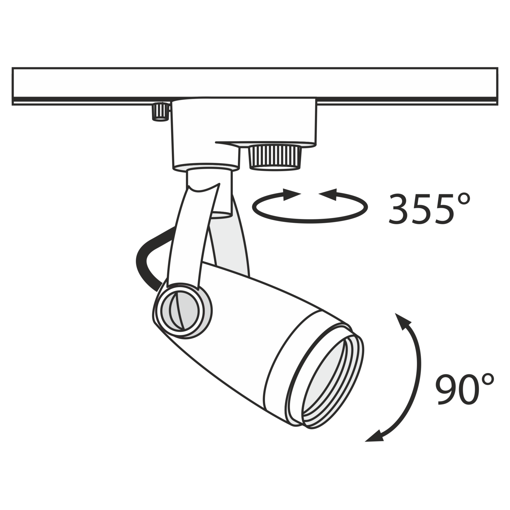 Трековый светильник. Корпус из аллюминия 2-х цветов.  Регулировка направления светового потока 360°.
