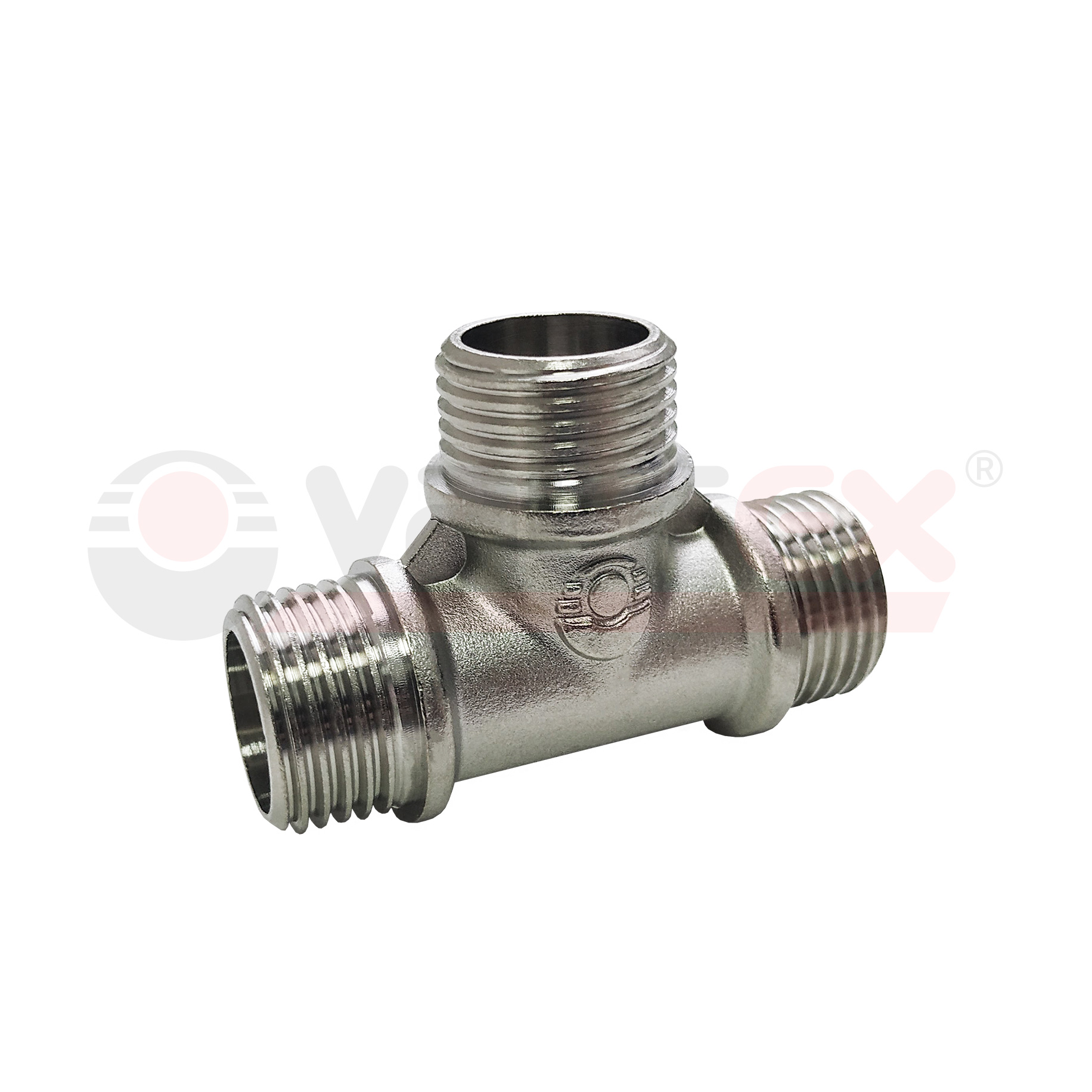 Тройник никелированный переходной с наружной резьбой VALFEX НР 1/2"- НР 1/2"- НР 1/2" (90/10)