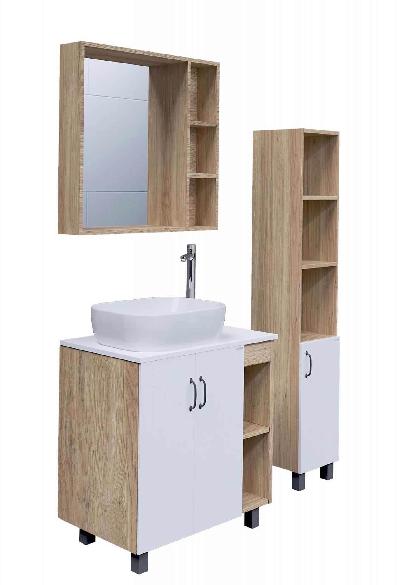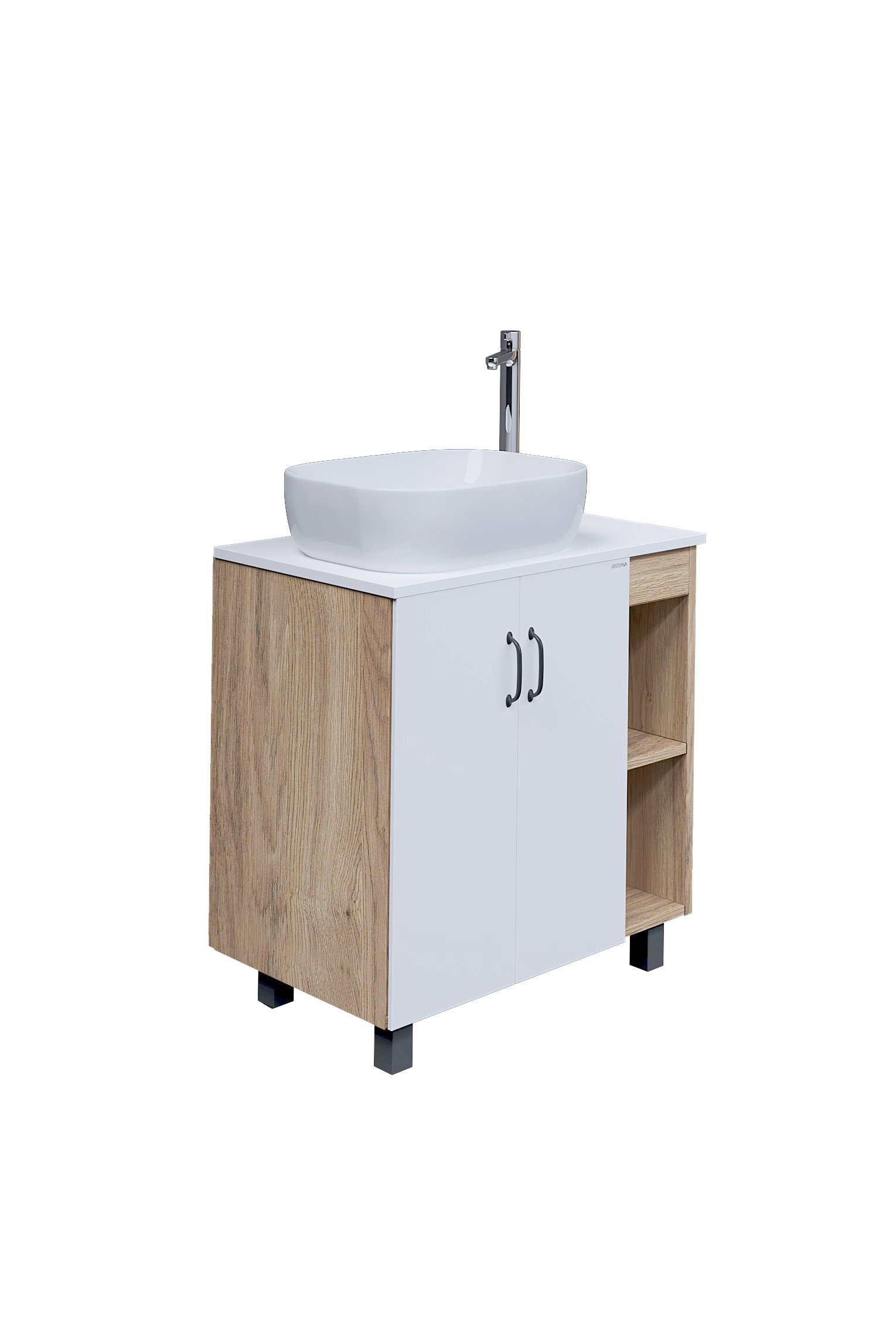 Тумба под раковину в ванной напольная Grossman ФЛАЙ-80 см, дуб сонома/белая