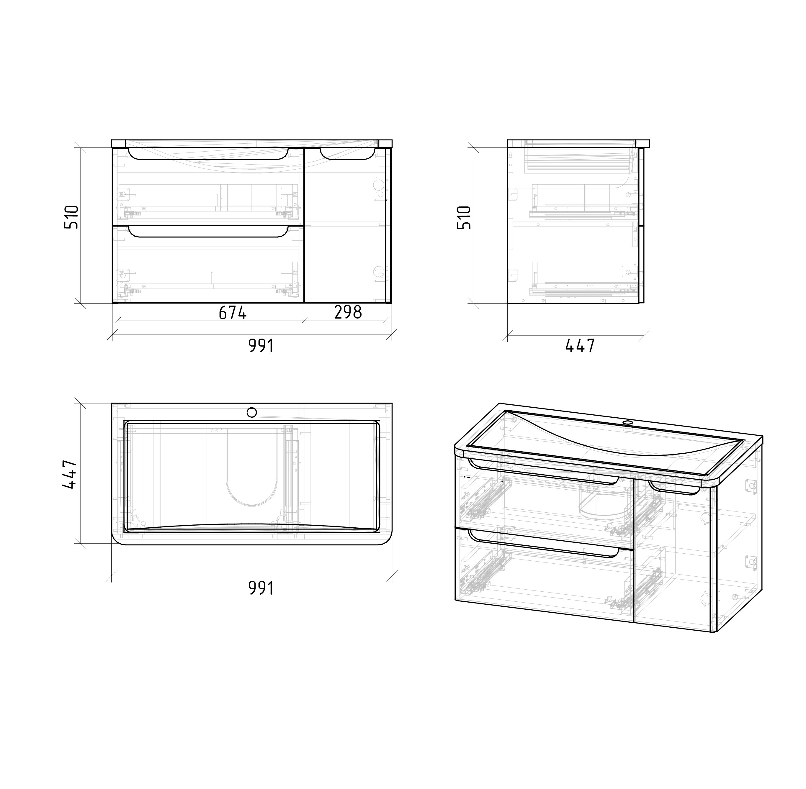 Тумба подвесная "АДЕЛЬ-100 см" с 2-я ящ. белая (ум. Aдель-100)